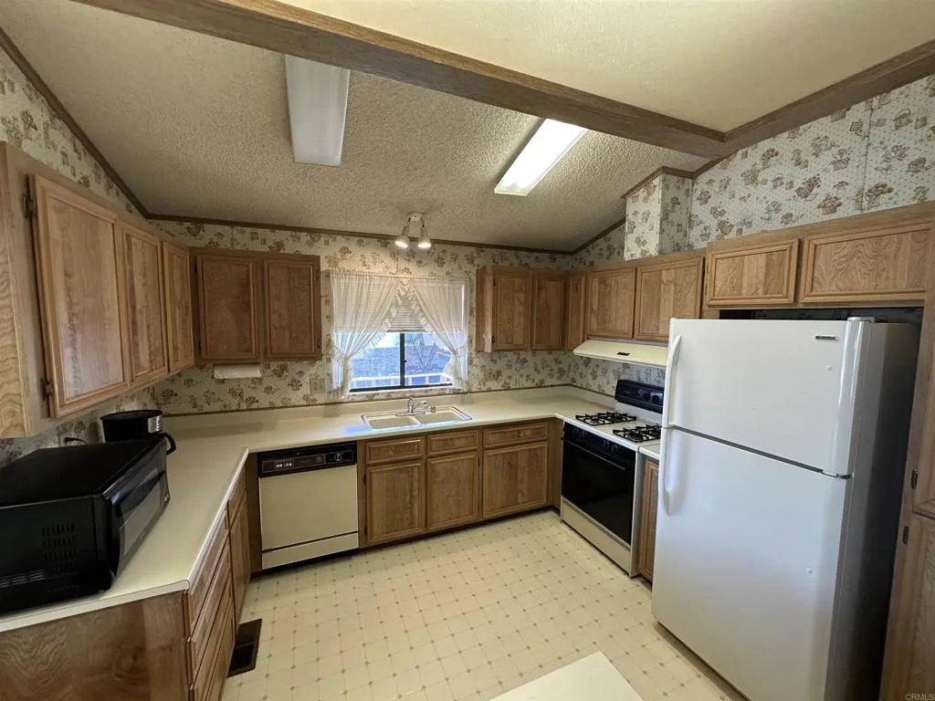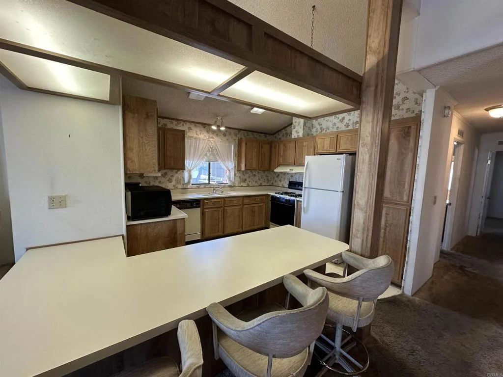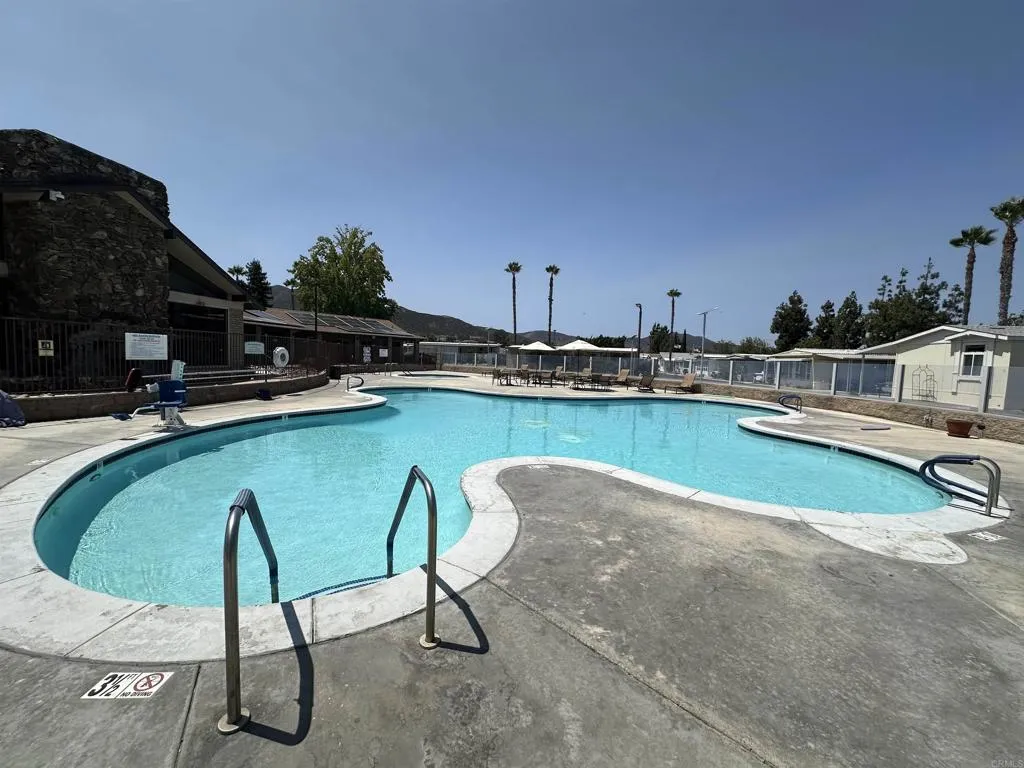 Welcome to the Meadowbrook! Santees Premier Senior living gated community. This one of a kind manufactured home features two bedrooms, two baths with the option to update and customize to your own taste. Additional features include vaulted ceilings with beams and a semi open floor plan, a large kitchen with lots of counter surface area, including a breakfast bar. The large laundry room has lots of storage. This is a corner lot with a great deck perfect for sitting, relaxing and enjoying coffee and afternoon beverages with views of mountains. Meadowbrook is a vibrant community with an abundance of amenities, such as pool, Jacuzzi, spa, billiards, putting green, horseshoes and a clubhouse that hosts numerous events, including potluck and bingo. Close to shopping, Dog Parks and Pickleball this community has it all! dont miss the opportunity to make this delightful residence your new home in a friendly, active community designed for your enjoyment!