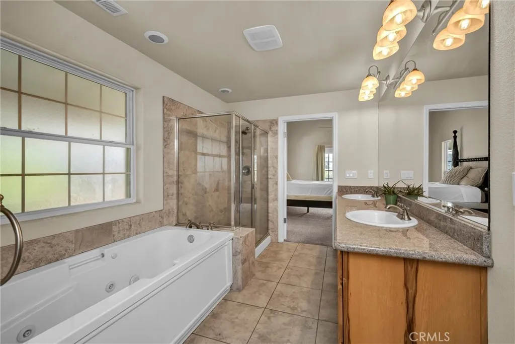 SELLER FINANCING AVAILABLE WITH LOW INTEREST!! Welcome to 18695 Horseshoe Rd, a stunning single-level home in the gated community of Hidden Valley Lake offering style, function, and a resort-like outdoor experience. Enjoy an open floor plan, soaring ceilings, and custom finishes throughout. Step inside to a spacious great room with abundant natural light, creating a bright and airy ambiance. The living area is perfect for entertaining or relaxing and flows seamlessly into the spacious dining space and kitchen. The kitchen boasts newer stainless steel appliances, ample cabinetry + pantry, and a large center island ideal for meal prep or casual dining. The primary suite is a peaceful retreat with vaulted ceilings, a large walk-in closet, and direct access to the backyard. The en-suite bathroom offers dual sinks, a soaking tub, and a separate walk-in shower. Two additional bedrooms share a well-appointed Jack and Jill bathroomperfect for family or guests. Enjoy the convenience of an indoor laundry room and a dedicated 2-car garage, plus a separate golf cart garage and extended parking pad with space for all your toys. Owned solar panels and a Tesla Powerwall provide energy efficiency and peace of mind. Step outside to your private backyard oasis! Entertain in style with a full outdoor kitchen featuring a CalFlame 6-burner grill under a charming pergola. Unwind in the hot tub or take in the views of your producing hobby vineyardplanted with approximately 80% Tempranillo and 20% Cabernet Sauvignon. A stamped concrete driveway adds curb appeal, while the fully fenced side yard of