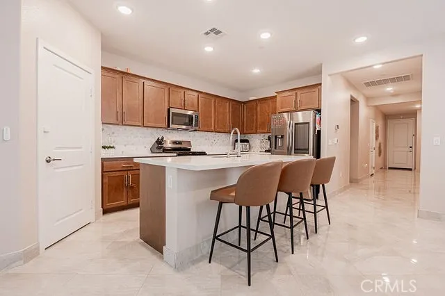 This stunning one-year-old home offers 4 bedrooms and 3 bathrooms with nearly 2,000 sq. ft. of living space. Over $100,000 in upgrades enhance every corner, including upgraded tile flooring throughout, custom backsplash, and a freshly painted interior. The open-concept kitchen features stainless steel appliances and modern finishes. Step outside to your private, low-maintenance backyard complete with turf, an extended 15-foot covered patio with cooling fans and lighting perfect for entertaining year-round. The garage boasts epoxy flooring and a full camera security system for peace of mind. Additional highlights include shutters on every window, potential RV parking, and one of the larger lots in the community. Conveniently located near schools, shopping, and freeways this home blends comfort, style, and function in a prime location!