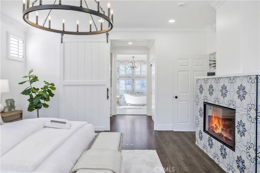 Nestled on a quiet cul-de-sac street within the prestigious GUARD-GATED COMMUNITY of Canyon Crest with NO MELLO-ROOS and LOW HOA, this stunning remodeled home perfectly blends luxury, efficiency, and comfort. This remodeled home residence showcases thoughtful design and superior craftsmanship throughout featuring a FULLY PAID SOLAR SYSTEM WITH BATTERY BACKUP, a spacious epoxy coated THREE-CAR TANDEM GARAGE with EV CHARGER outlet, MyQ wi-fi garage door openers with built in cameras and battery backup, and a large driveway that accommodates up to four cars. Step inside to a grand living and dining area with soaring ceilings, designer finishes, and abundant natural light that highlight the homes refined style. The gourmet chefs kitchen is a true showpiece, featuring an 8-burner Thor built-in range with dual ovens, a large built-in refrigerator/freezer, instant hot water tap, high-end stainless steel appliances, and a large walk-in pantry. The breakfast nook opens seamlessly to the inviting family room with a beautiful stone fireplaceperfect for everyday living and entertaining. Upstairs, the luxurious primary suite offers a private retreat with its own fireplace, a spacious sitting area, and a massive walk-in closet. The oversized spa-inspired primary bathroom features a freestanding soaking tub, a large walk-in shower, a separate makeup vanity and stunning designer finishes. Three additional bedrooms complete the upper level, including one currently used as an office with built-ins that can easily be converted into a bedroom. Step outside to a beautifully landscaped backyard