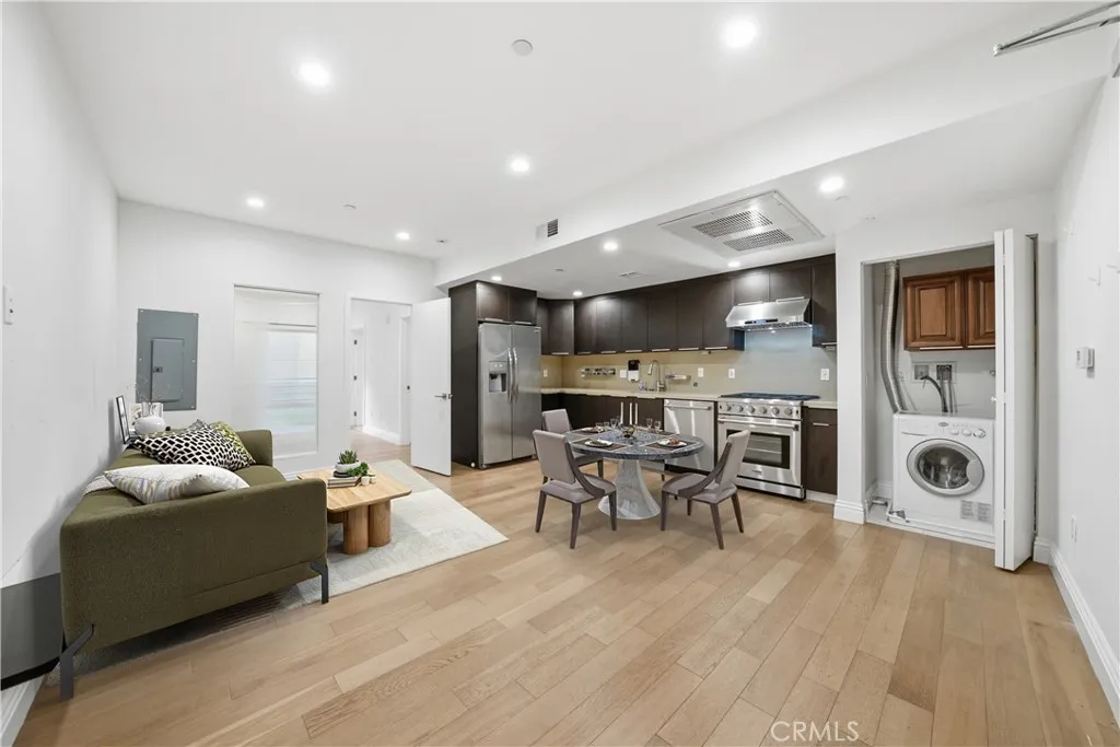 Experience stylish city living in one of LAs most vibrant and dynamic neighborhoods! This beautifully updated modern condo offers 1 luxurious primary suite . Designed with both comfort and functionality in mind, the open-concept layout seamlessly connects the living, dining, and kitchen areas, creating the perfect space for entertaining or everyday living. The sleek, upgraded kitchen features stainless steel appliances, quartz countertops, and contemporary cabinetry that complement the homes modern aesthetic. Additional highlights include recessed lighting, central air and heat, in-unit laundry. Enjoy peace of mind with 2 secured underground parking spaces and premium community amenities such as a sparkling swimming pool, recreation room, and a secured lobby entrance. Situated in the highly sought-after Koreatown neighborhood, youll be just minutes from Downtown LA, world-class dining, shopping, nightlife, and public transit.