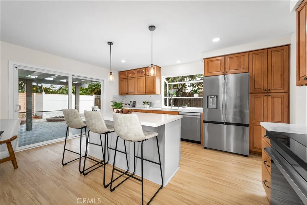 Welcome to a beautifully re-imagined single-level home on a quiet cul-de-sac in one of Costa Mesas most desirable neighborhoods. Thoughtfully and fully renovated inside and out, this three-bedroom, two-bath residence combines modern design with everyday comfort and efficiency. The kitchen features custom cabinetry (uppermost cabinets have LED lights), quartz counter tops, all-in-one stainless steel sink with a spring neck faucet, stainless-steel appliances, induction range, and a generous window overlooking the garden. The kitchen is part of the open-concept great room including a a large island with pendant lighting, cozy fireplace, and warm hue vinyl plank flooring (Lifeproof). Blending the family room and kitchen gives this home an inviting space next to the private backyard oasis systemperfect for year around entertaining. The backyard has a sparkling pool and spa, new vinyl fencing for pool equipment, solar-assisted pool heating, refreshed landscaping, and brick coping, . Two remodeled bathrooms have new vanities, designer fixtures, modern tilework, and bright LED lighting. The primary bathroom has a frameless vanity mirror with touch light and anti fog. The home updates also including dual-pane windows, recessed lighting, ceiling fans, and fresh interior and exterior paint. Two-car garage with built-in shelving, above car storage, and washer/dryer connections. Nestled near Baker between Bear and Fairview, this home offers quick access to South Coast Plaza, The Camp & The LAB, OC Fairgrounds, and top Costa Mesa schools. Convenient to beaches, freeways, and John Wayne A