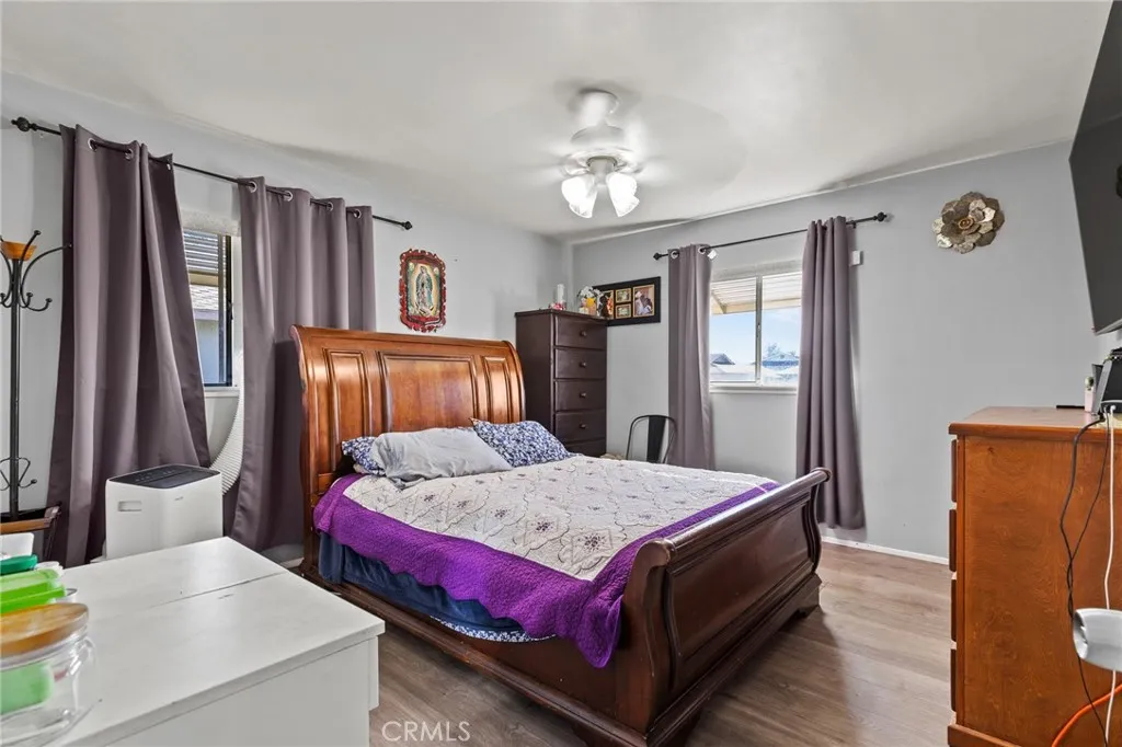 This charming Rialto home features 4 bedrooms and 1.5 bathrooms, offering both comfort and versatility. The property includes approximately 500 additional square feet split between a spacious enclosed patio perfect as a sunroom, home office, or entertainment area, and a detached 4th bedroom that provides excellent potential for an ADU conversion or multi family living. Built in 1956 with pride and quality craftsmanship, the home showcases well maintained hardwood and laminated wood flooring throughout, an open kitchen with ample cabinetry, and a large living room with a cozy fireplace. Enjoy the convenience of central A/C and heat, a whole house fan for energy efficiency, and a two car garage with a rear workshop area. The property sits on a generous lot with a nicely sized front and back yard, a large storage shed, and plenty of space for parking. Ideally located near schools, shopping, parks, and freeway access, this home blends classic charm with modern potential.