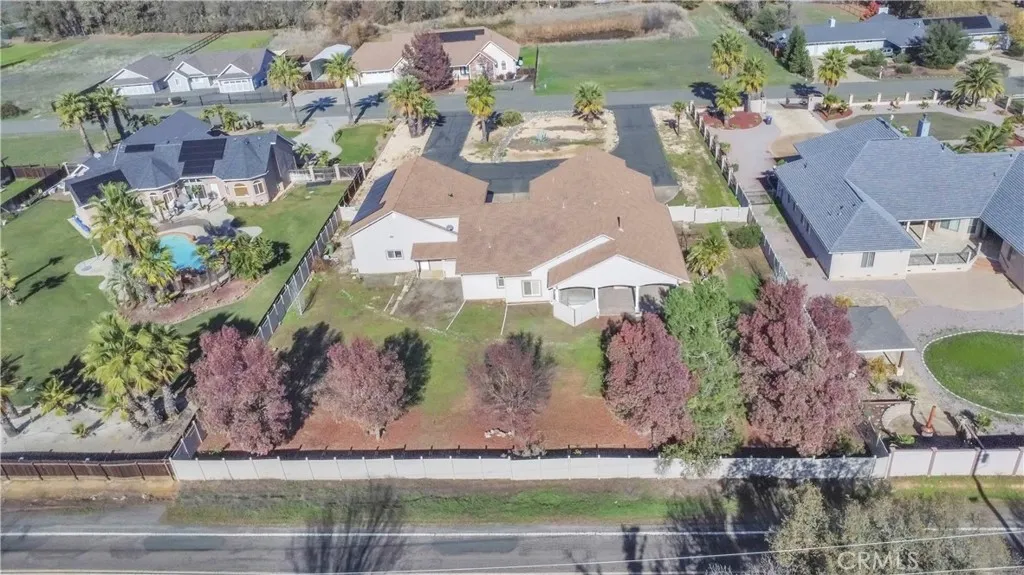 Welcome to this 3 bedroom, 3 bath home nestled on just under an acre of land. Situated toward the front of the center of the property, this home offers a large, fully fenced backyard with mature trees, providing a blank slate for your imagination. Step inside to discover beautiful tile floors throughout and a chef;s kitchen equipped with granite countertops, a garbage compactor, a countertop gas range, a convection oven, a utility sink with a pot filler and a breakfast counter. The kitchen opens up to a very large family room, which features a cozy gas-fired fireplace. The large living room boasts several windows allowing for lots of natural light and a sink and vanity that can be added onto for a bar for entertaining. The primary suite is a true retreat, featuring separate access to the back yard. The spa-like primary bath includes a jetted tub and a walk-in shower with glass tile. Off the primary suite is an additional room that can serve as office/nursery/craft room/bedroom...you pick! For those who love to work on projects or need additional storage, the property features a 2 car garage with its own door, adjacent to a larger2-3 bay garage with an RV opening. The space is perfect for a workshop, with lots of shelving, cabinetry, toilet, mini kitchen and ample counter space. Additionally, there is a separate laundry room with washer and dryer, sink, folding counter and fold out ironing board. The front yard has a convenient covered carport, making unloading a breeze.There is a non-functioning boiler that heats the water and radiant floors. Don't miss out on this incredib