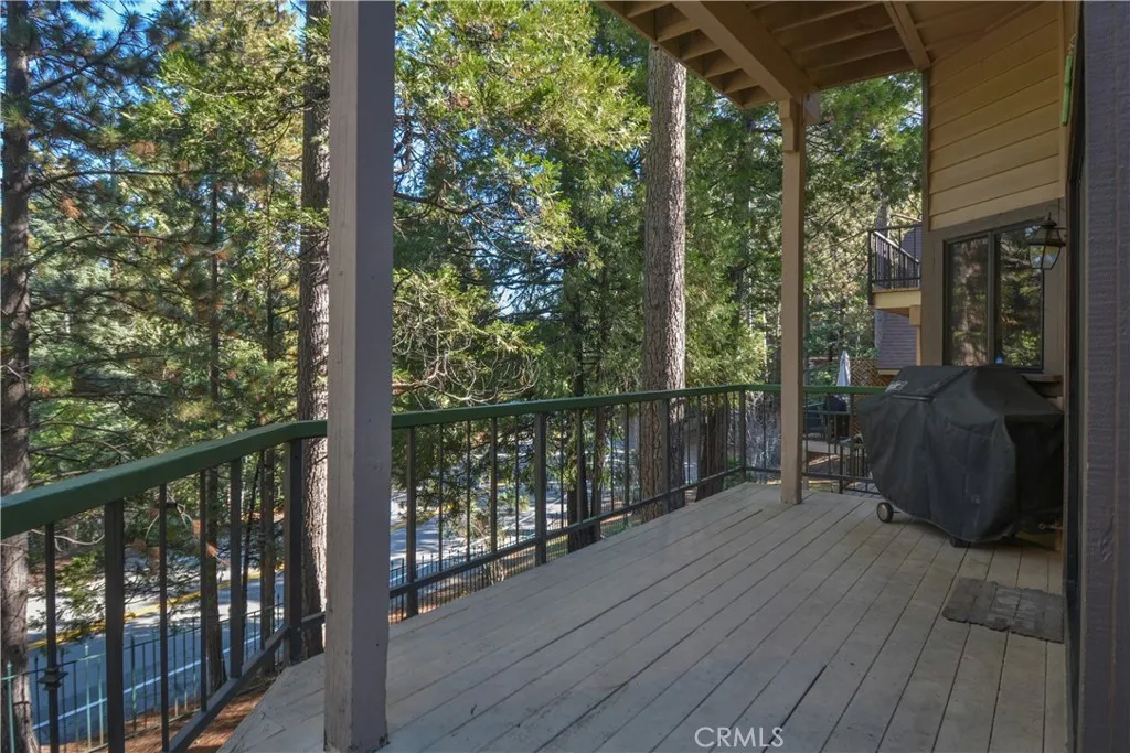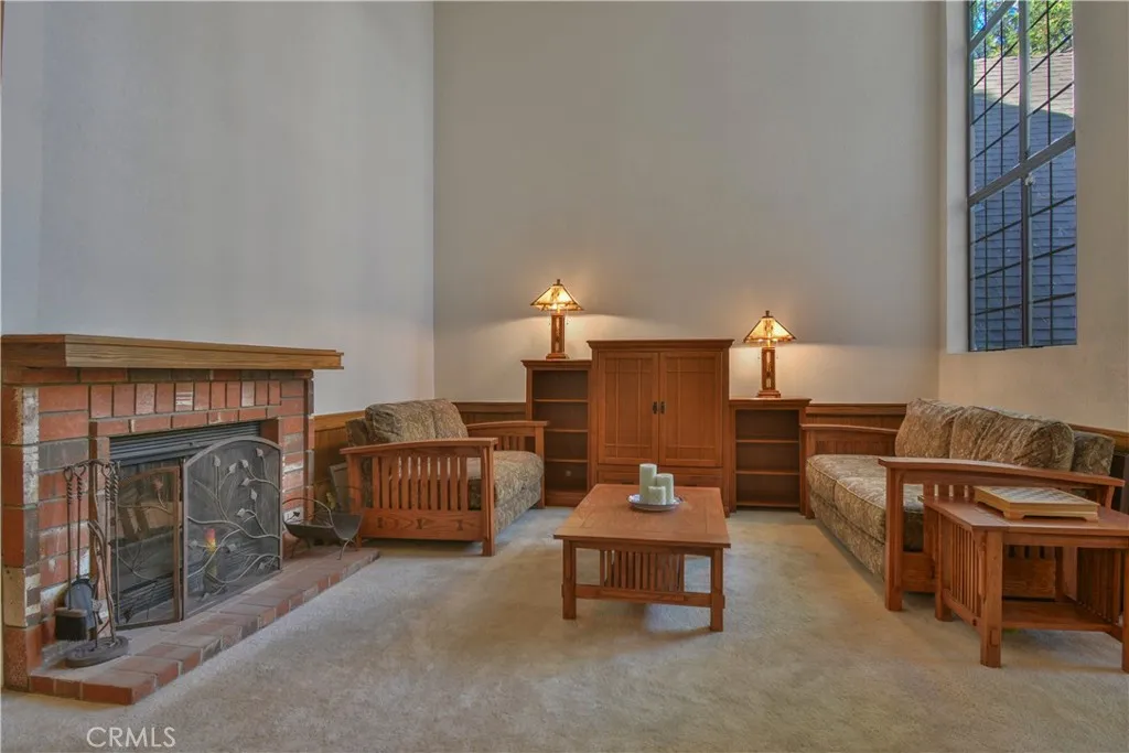LAKE RIGHTS! Welcome to one of Lake Arrowheads finest gated condominium communitiesArrowhead Lake Estatesoffering full Lake Rights and an unbeatable location just a short walk to the waters edge. This spacious multi-level townhome features 3 bedrooms (or 2 plus an office/den), 2.5 bathrooms, and approximately 2,054+ sq ft of beautifully designed mountain living. A dramatic entry welcomes you with rich natural wood accents, abundant natural light, and soaring 25-foot cathedral ceilings anchored by a stunning wall of glass overlooking the pines. The main living level boasts a large living room with cozy brick fireplace, tree-top views, and access to an expansive entertaining deck. The adjoining dining room accommodates large gatherings, while the galley kitchen offers plenty of cabinetry, a gas range/oven with electric ignitor, and a charming breakfast nook. A few steps up is an additional den/office/3rd bedroom with its own fireplace and wood-paneled wallsperfect as a private workspace or guest spaceplus a convenient half bath. Upstairs, the primary suite is a true retreat with high ceilings, a private balcony for morning coffee, an oversized spa tub with peaceful tree-top views, dual vanities, separate shower, and a massive walk-in closet. A generous guest bedroom and full bath are located at the opposite end of the home, along with the laundry area for added convenience. Additional highlights include: Dual balconies with forest views Huge unfinished basement ideal for extra storage Beautifully maintained interior Huge windows capturing mountain wildlife and sunlight T