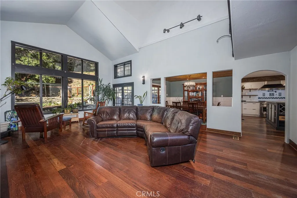 Set upon 2.42 acres of serene Twin Peaks landscape, this exceptional residence captures sweeping views of snow-draped mountains through a canopy of whispering pines. Thoughtfully designed and spanning over 3,100 sq ft, the home offers 5 bedrooms and 4 baths, complemented by soaring 20-foot ceilings and beautifully articulated living spaces. The main level unveils an elegant great room and dining area finished in rich Merbau hardwood, flowing effortlessly into a chefs kitchen appointed with striking Blue Tahoe Quartzite surfacesan inspired setting for both intimate gatherings and grand entertaining. The primary suite enjoys its own private wing, complete with a secluded deck positioned to frame the surrounding natural beauty. A rare offering of amenities includes an artists atelier with an integrated sauna, a greenhouse, a metal garage, and an enchanting stone well house. The impressive paver-stone drive, accessed directly from Hwy 189, sets a distinguished tone upon arrival. Multiple terraced vantage points across the estate provide captivating sunset panoramas and starlit skies, inviting endless possibilitiesgardens, orchard, vineyard, ADU, observatory, or additional lifestyle spaces of your own creation. A property of uncommon character and breathtaking setting, this is a mountain retreat where inspiration and tranquility meet.