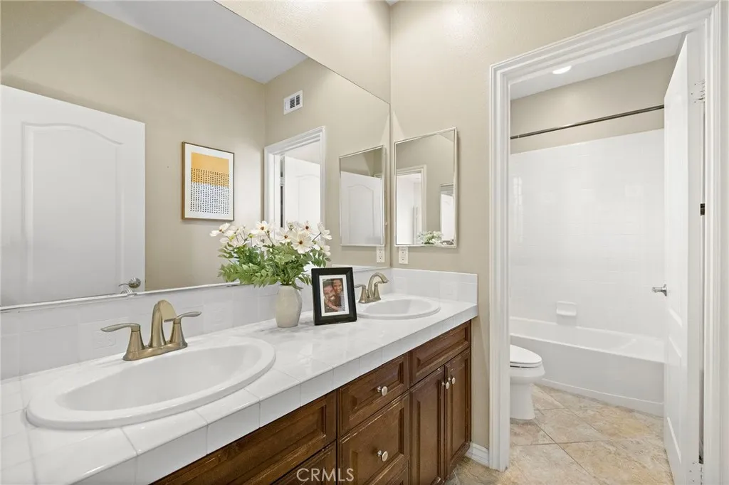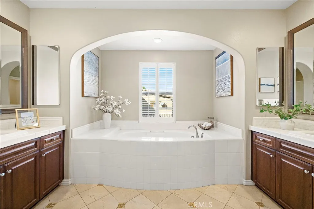 Beautiful Villa Rosa Plan 3 tucked away on a private cul-de-sac in the prestigious Woodbury community. This well-maintained home features 4 en-suite bedrooms including a main-floor suite, 4.5 baths, a dedicated office with abundant natural light, and a spacious bonus room with a balcony. Exceptional parking includes an extended driveway that can accommodate up to 4 cars, plus a 3-car garage, perfect for large households and guests. The open-concept layout highlights formal living and dining rooms, a spacious family room with a cozy fireplace, and a chef-inspired kitchen complete with granite countertops, center island, walk-in pantry, stainless steel appliances, and a built-in refrigerator. The elegant primary suite creates a private retreat with a fireplace, dual vanities, soaking tub, separate shower, and walk-in closet. Additional upgrades include hardwood floors, plantation shutters, recessed lighting, and designer interior paint. The private backyard offers generous outdoor space ideal for dining, entertaining, or enjoying everyday relaxation. Beyond the home, experience one of Irvines most sought-after lifestyle communities Woodbury features 7 resort-style pools, sports courts for basketball, baseball, tennis, pickleball, and soccer, along with beautiful parks, gardens, and playgrounds. The convenience continues with Woodbury Town Center located right within the community for shopping and dining. Families benefit from being within a 10-minute walk to two top-rated schools Woodbury Elementary and Jeffery Trail Middle School. Woodbury Elementary is also one of Irvines