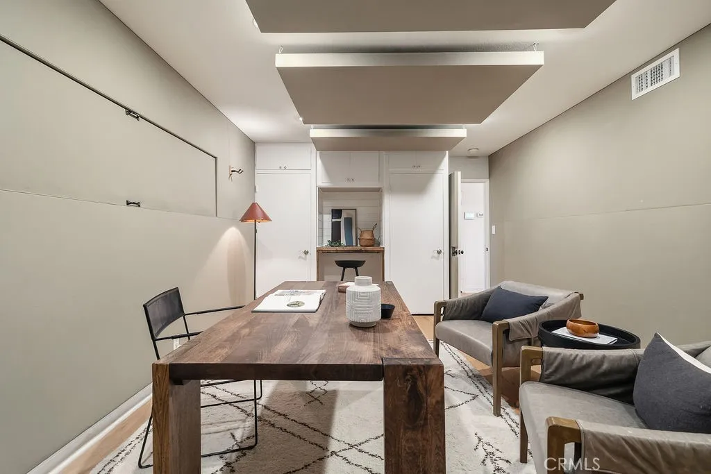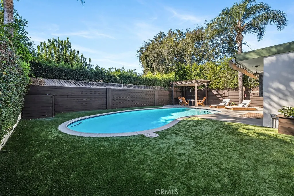 Nestled on one of Valley Villages most sought-after blocks, this residence blends updated modern style with just the right hint of mid-century charm. This beautiful 3-bedroom, 2-bath home offers over 2,300 square feet of well-appointed living space with a fresh new look! From the moment you walk in, you're greeted by free-flowing space where modern design meets everyday comfort. The open floor plan effortlessly blends the living, dining, and family room extension, offering an ideal setting for hosting friends or sharing family moments. Whether youre entertaining in the spacious indoor-outdoor living areas or enjoying a quiet evening by the fireplace, this home offers a perfect balance of style, function, and sophistication. The galley-style kitchen caters to those who love to cook, featuring plenty of counter and cabinet space, range, microwave, dishwasher, trash compactor, newer refrigerator, and a greenhouse window. Off the kitchen, you'll find an updated bath and a mudroom, perfect for reducing clutter in the home. The primary suite boasts a spacious lounging area, walk-in closet, and access to the backyard. Two additional rooms and a full bath are located off the hallway. One bedroom includes the bonus of a custom professional-grade sound studio designed by Evolve Acoustics, ideal for podcasters, music producers, VO artists, or anyone seeking a quiet, creative retreat. Outdoors, experience true Southern California living with a sparkling heated swimming pool, eco-friendly grass, pergola with retractable canopy and TV closet, complete with a retractable shading system th