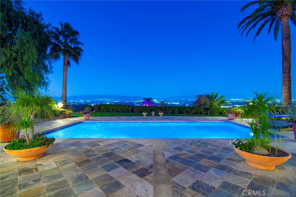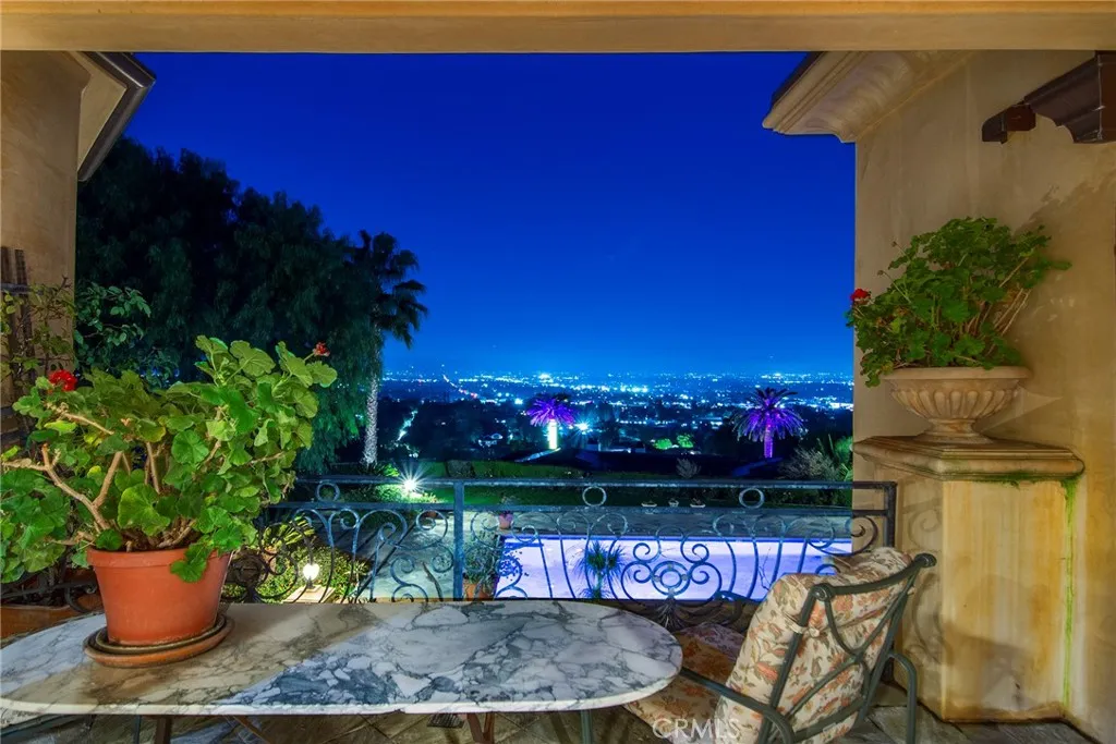 Presenting a magnificent custom Tuscan nestled South of Blvd within the tranquil hills of Tarzana. Spellbinding views from the rocky Santa Susana mountains in the northwest corner of the Valley spanning clear across to the east while capturing hypnotic visions of glistening lights, majestic mountains and all the daytime dazzle of the Valley below. Gated entrance at the end of a quiet cul-de-sac leads to this ultra-private nearly 8,400 sq. ft. estate on 1.5 acres designed and crafted by these original owners. Beautiful arches and grand columns entice you to explore more. Inside, a living room with 20 ft. soaring ceilings, family room with fireplace and spacious formal dining all offer large windows to ensure the glorious views are always right by your side. Open & bright kitchen features a large center-island & adjacent breakfast nook with plenty of windows to enable you to devour the sumptuous sites with each and ever meal. Large office, game-room and ensuite further enhance the lower level. Choose the grand curved staircase or the stairs adjoining the kitchen to guide you to the upper level orif stairs are a strain, an elevator is at your service affording the opportunity to remain for a lifetime. Your double-door entry primary suite provides three prime vantage points to soak in the sights.cozy adjoining reading/relaxation arena, large private balcony and from the comfort of your bed as the last thing you see each night and the first as you arise. Spacious luxurious bath and a massive walk-in closet add to its appeal. Three additional ensuites with balconies and an upper-