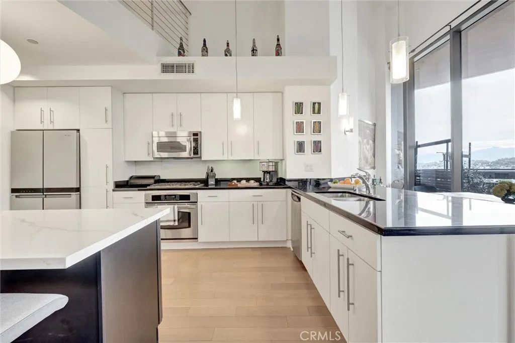 Rare 17th-Floor Live/Work Condo with Private Balcony & Direct Rooftop Access Exceptional 2-story Live/Work residence located on the 17th floor, one of only nine units in the building offering a private balcony and direct access to the rooftop pool and sky deck. This 2-bedroom, 2-bathroom home features high ceilings, spacious living areas, and panoramic views stretching from the Hollywood Hills to Dodger Stadium and the Downtown LA skyline. Enjoy approximately 500 sq. ft. of private outdoor space with unobstructed city viewsideal for entertaining or relaxing. Both bedrooms include en-suite bathrooms, providing comfort and convenience for residents, guests, or work-from-home use. Additional building features include: Two reserved parking spaces with EV charging access Extended guest parking Gym, Business Center, & Multimedia Theater Room On-site storage rentals Amazon package lockers 24-hour concierge and security The 17th-floor Sky Deck offers resort-style amenities including a pool, spa, cabanas, lounge seating, wet bar, and BBQ area. A rare opportunity to own one of the buildings most desirable and uniquely positioned units in the heart of Downtown Los Angeles.