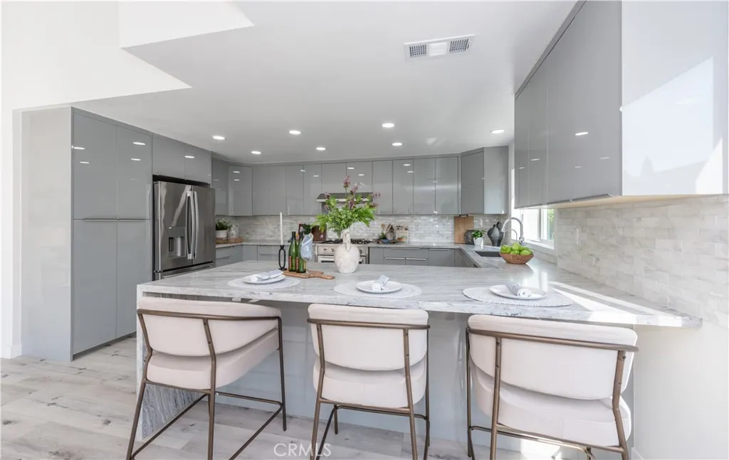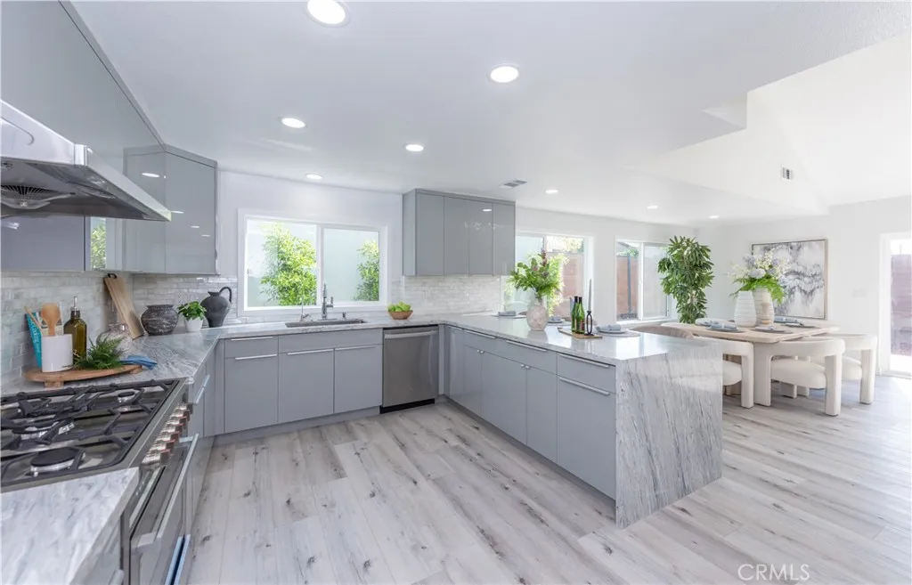 Beautifully renovated 4-bedroom, 3-bath home in the heart of Northwood. Nearly every part of the property has been updated, including a permitted approx. 237 sq ft addition that creates an extra bedroom and expands the living space (buyer to verify). Inside, the home features fresh interior paint throughout (including garage), all new flooring, new interior and closet doors, and all new lighting. The kitchen was taken down to the studs and rebuilt with new plumbing, electrical and gas lines, custom cabinetry, tile, sink and faucet, disposal, and a full suite of newer appliances. All bathrooms were fully remodeled with new plumbing and electrical, new tile, tubs/showers, toilets, faucets, vanities and mirrors. Additional upgrades include a reconfigured primary suite with new walk-in closet, new marble bay-window sills, new stair rail with engineered-stone detail, new water heater, water softener, and updated HVAC, water and gas lines. Exterior improvements include new dual-pane windows, new roof, fresh exterior paint, extensive new concrete hardscape, new iron entry gates, new fencing, synthetic turf, refreshed landscaping, and new rain gutters. The garage has a new ceiling and epoxy flooring. Turnkey home in an established Irvine neighborhood close to parks, shopping, and award-winning schools.
