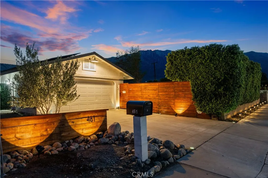 Experience modern comfort and thoughtful upgrades in this turnkey home located in Desert Highland Gateway Estates. Step behind the front gate and into a classic Palm Springs stunner where clean lines, warm light, and an inviting flow define this single-story retreat just minutes from Downtown. A spacious, fully fenced yard creates a private, modernist first impression. As you approach the black window-pane door stands like a modern art piece simple, bold, and beautiful guiding you into the stylish entryway. Offering 4 bedrooms and 2 baths across 1,284 sq ft, this home sits on a 7,840 sq ft lot with mountain views and a direct-access 2-car garage. Inside, warm faux tiled floors and soft natural light lead to an open living space where the kitchen, dining, and lounge areas blend effortlessly. Quartz countertops and stainless-steel appliances including a polished 5-burner stove with a minimalist wall-mounted range hood set the tone for modern Palm Springs living. A chic dining bar with dual wine refrigerators adds a touch of retro sparkle. Inside, the four bedrooms and two refreshed bathrooms feature clean subway tile, modern fixtures, and a walk-in rainfall shower for a bright, chic interior. The primary room features updated bathroom with a stylish walk-in shower. Sliding doors open to the backyard, creating that iconic indoor-outdoor connection. The entertainers backyard feels like a vintage desert hideaway with a shaded pergola, spa, and relaxed lounge zones. Enjoy a beautifully crafted custom BBQ for effortless, year-round entertaining, perfect for gatherings, dinners und