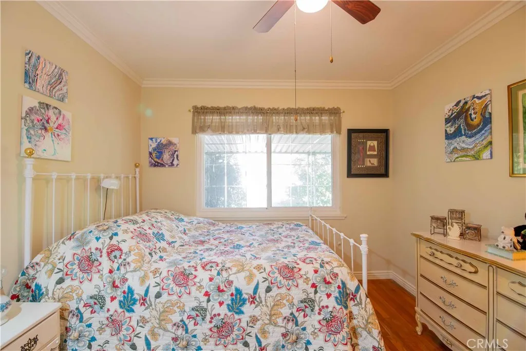 Introducing a cozy four bedroom, two bath home with wood floors throughout on a quiet street in a nice pocket of West Hills! The home offers plenty of parking with an over-sized two car garage plus a carport and ample driveway. The garage offers cabinetry for storage along with a work counter with natural light flowing in from a south facing window. Enter the home and relax in a living room with brick fireplace flowing in to a formal dining area and out to the enclosed patio. The kitchen with tiled counters and floors has bar top serving access to the dining area as well as a small eat-in area. The first bedroom has built in book shelves and direct access to the adjacent bathroom with walk in shower. The adjacent laundry room has side door access leading out to the side yard with easy access to the garage. There are three additional bedrooms down the hall as well as storage cabinets, a hall closet and full bath. The largest bedroom has built in storage cabinets beneath large windows and is adjacent to the hall bathroom. Make some light touch ups and move in or get creative, check with the City, open some walls and entirely re-imagine the space! The backyard has an over-sized storage unit and a small shed, fruit trees, covered patio, brick walk ways and garden like setting. This home is minutes to all major markets, the Village, Westfield Warner Center mall and Calabasas Commons.