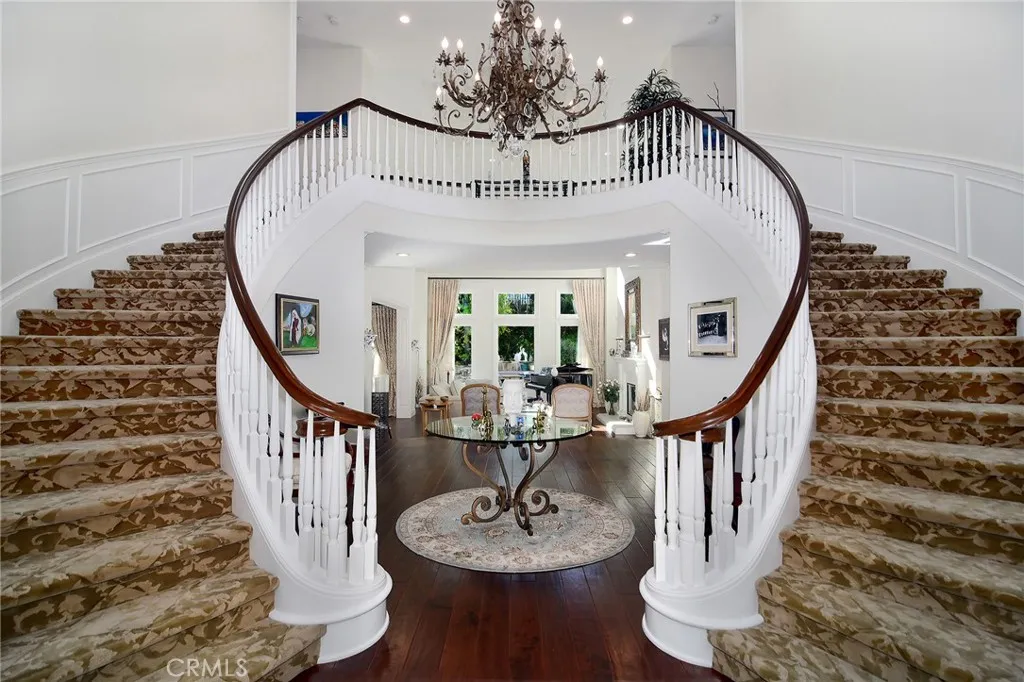 Rare opportunity in guard-gated Mulholland Park where day or night, not one, but two officers stand guard. This desirable six-bedroom Plan 6 offers nearly 6,600 sq. ft. of luxurious living on a prime corner lot within this cherished community. Distinct double staircase and 20 ft. ceilings make an immediate statement. Warm natural light drawn by a vast array of windows bathes throughout this incredible floorplan. Open and bright kitchen, which flows into the family room, has experienced a stunning renovation. Gorgeous custom cabinetry, large center-island with a dazzling white marble cap, plenty of granite counters, quality appliances and a walk-in pantry create a dream come true. Grand formal dining, wet-bar and living room with soaring ceilings are ideal. Spacious office with custom built-in, two bedrooms, two baths and sizeable laundry room complete the lower level. Atop the stairs, an open landing leads to an enormous primary retreat featuring a private balcony, romantic fireplace and his and her walk-in closets. An ultra-luxurious primary bath with a centered soothing spa tub features an amazing adjacent balcony with a peak-a-boo taste of a Valley view. At the south-wing, youll find an open upper-level family room with a wrap-around balcony shared with a suite. Three additional ensuites complete. A second staircase from the kitchen provides an easy escape for a late-night snack. Outside, a refreshing pebble-tech pool and spa are the centerpiece to these lush tranquil grounds offering a side area with dining option off the kitchen and an awesome putting green to hone you