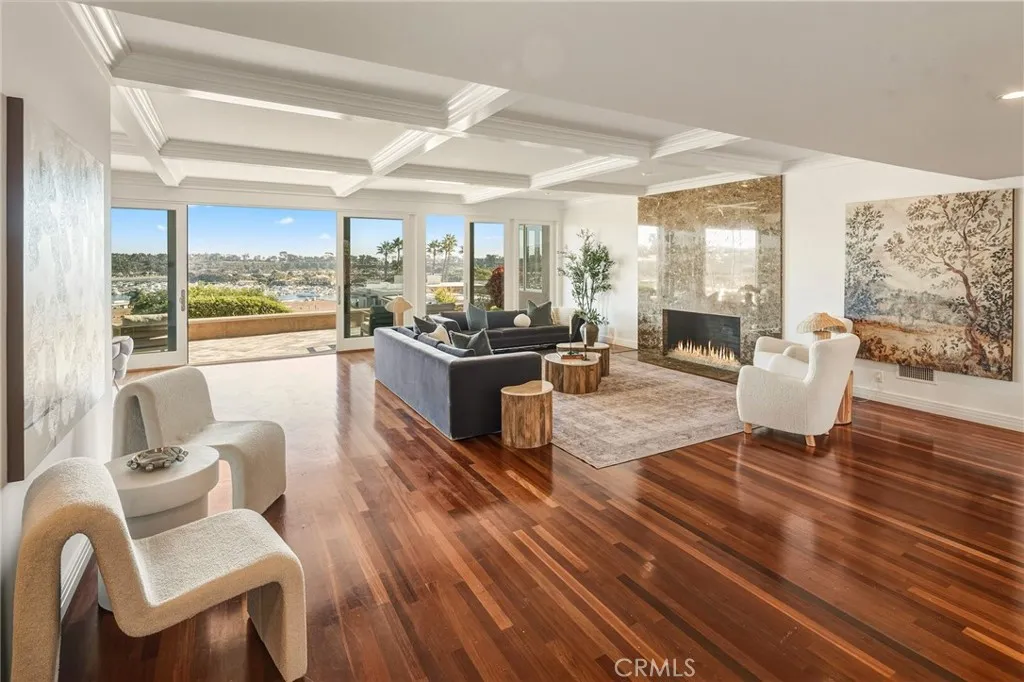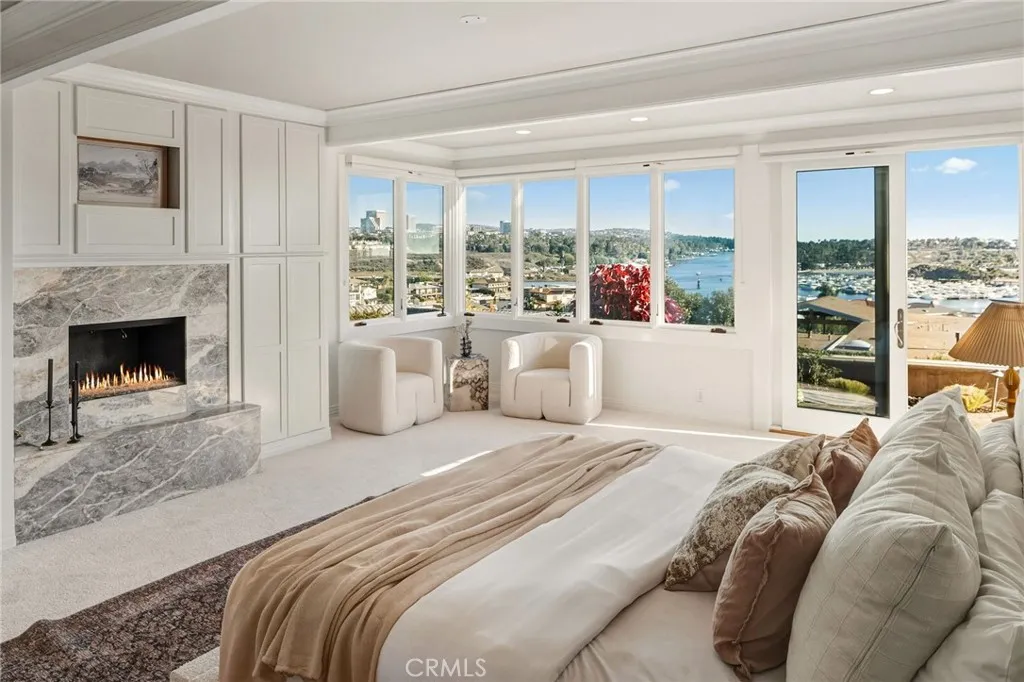 Perched on one of Dover Shores most desirable view lots, this Mediterranean Coastal luxury home captures sweeping, unobstructed views of the Upper Newport Bay, the Back Bay wetlands, and the distant ocean. The main living area is defined by top-to-bottom glass windows and sliding doors that open to the backyard, creating a seamless indooroutdoor connection and filling the space with natural light and panoramic views. Inside, rich hardwood floors, elegant coffered ceilings, and a fireplace bring sophistication and warmth to the living space. The kitchen features upgraded stainless-steel appliances, a center island, a cozy breakfast nook, and bar-top seating, offering a comfortable and stylish setting for casual dining or gathering with family and friends. A refined library with custom wood built-ins provides a versatile space that can serve as an office, lounge, or whatever best suits the new owners lifestyle. The primary suite is a private retreat with its own fireplace, a spacious walk-in closet, and a spa-like bathroom featuring a jetted soaking tub framed by picture windows, a generous walk-in shower, and direct access to the backyard. The outdoor areas are designed for relaxation and hosting, with a built-in BBQ, hot tub, and lush landscaping accented by fruit trees, all set against the peaceful backdrop of the Back Bay. The property is gated for added privacy and security, and the garage includes built-in storage for convenience. Combining refined interiors, a flowing open layout, and one of the most sought-after view settings in Newport Beach, this home offers an exce
