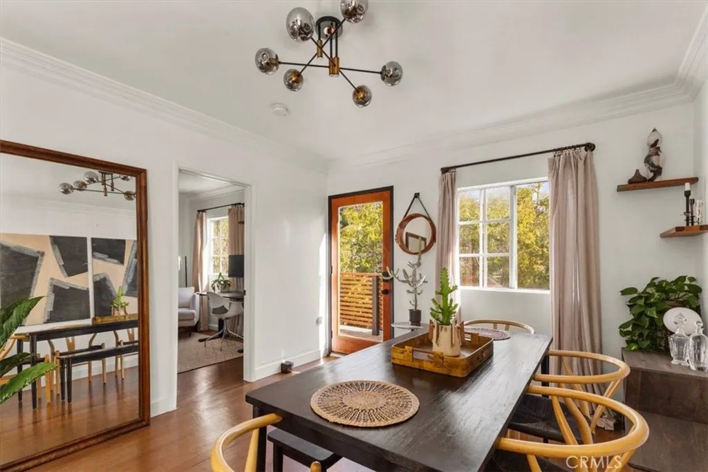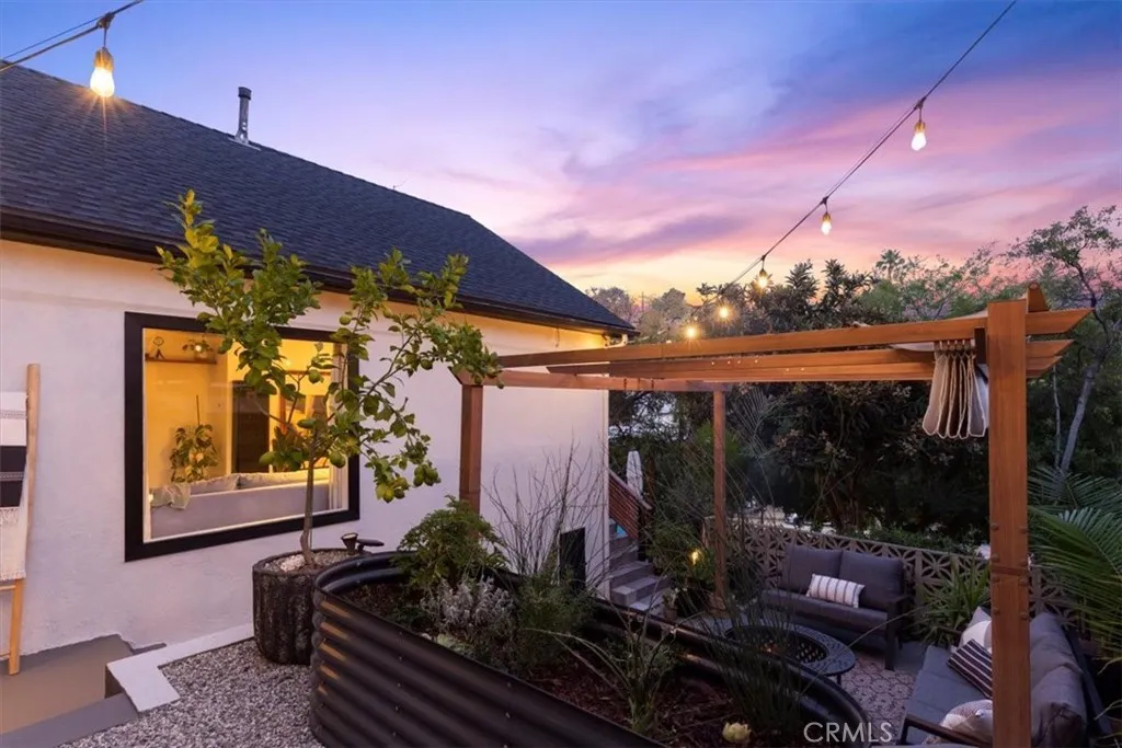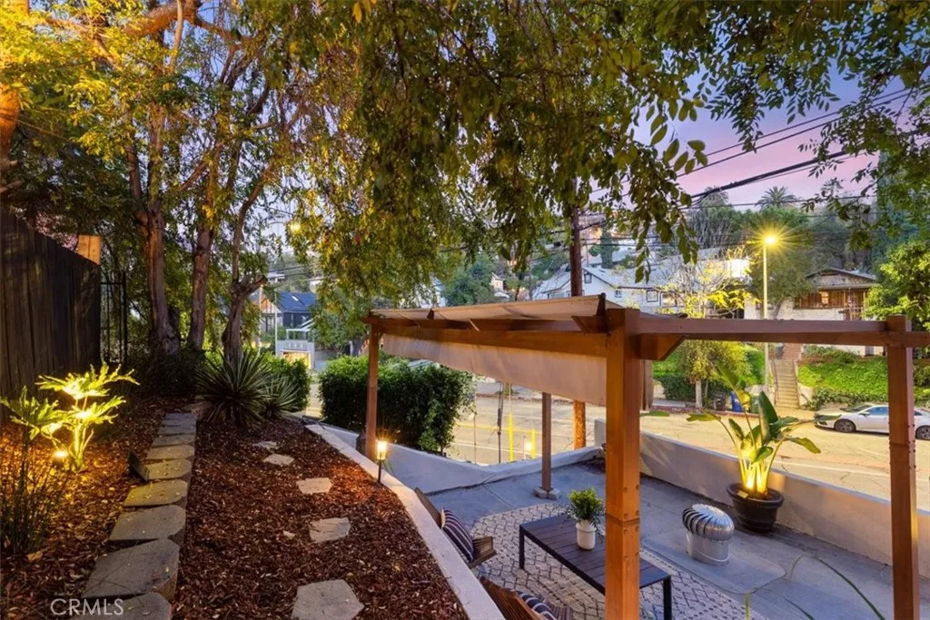 Perched atop a gentle hillside in Silverlake, 22072209 Apex Ave captures the essence of California living where historic charm meets modern design. Reimagined with a fresh architectural perspective, this dual-residence estate offers a rare balance of artistry, comfort, and flexibility in one of Los Angeless most sought-after neighborhoods. Behind a private gated entry, the residence unfolds into two harmonious homes surrounded by lush greenery, curved pathways, and thoughtfully designed outdoor spaces. The crisp white exterior, accented by black trim and warm amber wood, sets a timeless tone that continues throughout, as every corner invites connection to nature and the laid-back sophistication that defines Silver Lake living. Lush landscaping with intimate garden nooks creates great areas for morning coffee or evening wine, while multiple outdoor areas including a cowboy pool, fire pit, pergolas, and a charming greenhouse offer inviting spaces for relaxation and entertaining. From sun-dappled afternoons to evenings beneath the stars with views of the downtown skyline, the home is a private oasis above the city. Natural light floods large windows and glass doors, blending indoor and outdoor spaces seamlessly. The home has airy living areas where mid-century influences meet a warm California coastal aesthetic. Reclaimed original hardwood floors lend authenticity, grounding the modern updates with a sense of timeless character, while curated fixtures and natural hues create a soothing, artful ambiance. The kitchen features quartz countertops, custom fixtures, and stainless st