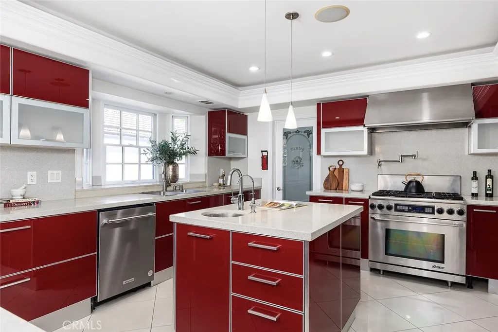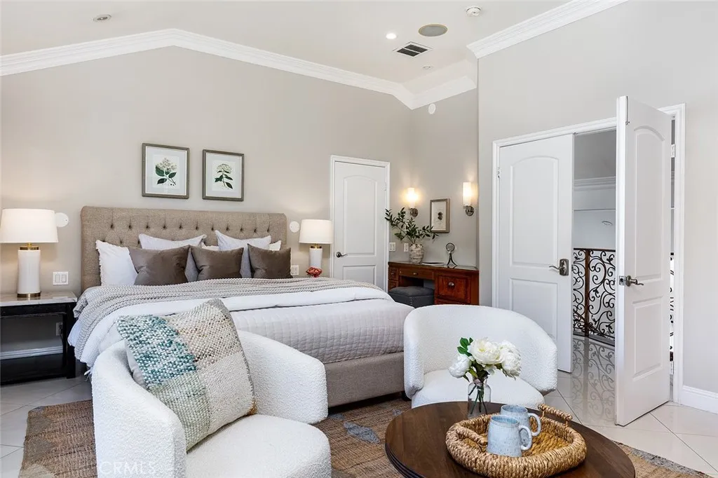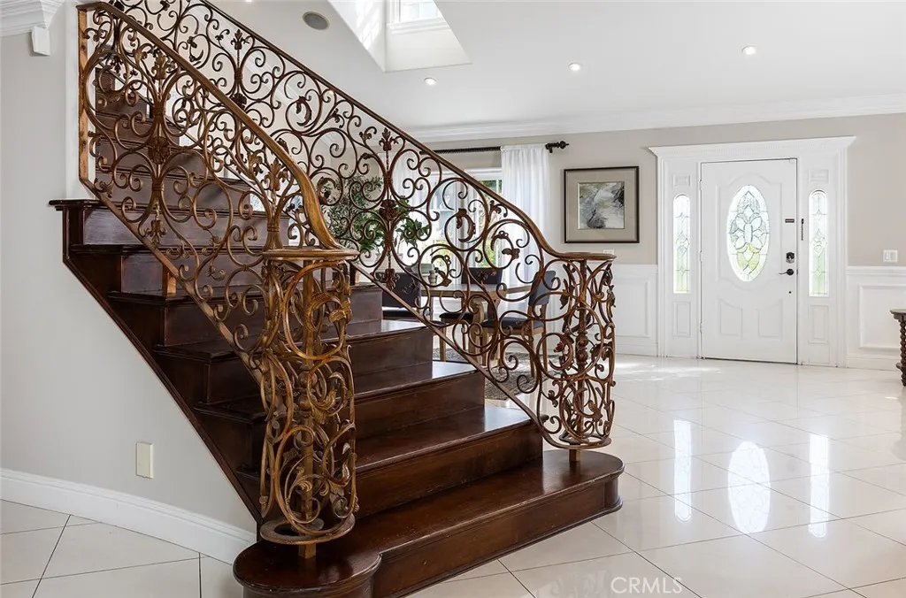 Beautiful, south-facing Cape Codstyle home located in the highly desirable city of San Marino. This two-story residence features an open floor plan with high vaulted ceilings, recessed lighting, crown molding, and porcelain tile flooring throughout. Rebuilt in 2005 (excluding the foundation and select walls), the home has been exceptionally well maintained over the years. Upon entering, you are greeted by a charming decorative fireplace in the living room and an elegant staircase with wrought-iron railings and mahogany wood, situated just off the dining room. The modern kitchen includes Italian Scavolini tempered-glass cabinetry, a newer LG built-in refrigerator, stainless steel appliances, Caesarstone countertops, and a walk-in pantry. The adjacent family room offers a wet bar and French doors that open to the patio and backyard, creating a seamless indoor-outdoor flow for entertaining. The first floor offers two bedrooms, a den/optional fifth bedroom, and three bathrooms. The primary suite and an additional bedroom suite are located on the second floor. The spacious primary bedroom includes a wet bar and an oversized walk-in closet, while the primary bathroom features a jetted spa tub, separate shower, double sinks, and granite countertops. The expansive backyard is beautifully landscaped with a lush lawn, more than twenty fruit treesincluding pear, apple, orange, lemon, guava, plum, fig, cherry, avocado, passion fruit, and grapesand a variety of flowers that create a true garden atmosphere. A large, securely fenced swimming pool and gazebo provide an ideal setting for ou