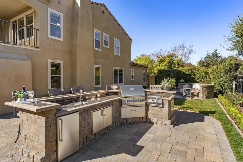 Experience the essence of luxury living in this exquisite home with stunning canyon views that truly impress. Flooded with natural light boasting 3,748 square feet of living space with 5 bedrooms, 4 bathrooms, an upstairs open loft, 2 flex rooms & a downstairs ensuite bedroom, perfect for multi-generational living. The entertainer's dream kitchen flows seamlessly into the expansive family room & showcases stunning granite countertops, a generous center island adorned with two stylish pendant lights, a five-burner stove, walk-in pantry & stainless steel appliances including 2 ovens & a built-in SubZero refrigerator. The spa-like Primary Suite offers a lavish bathroom with dual vanities, soaking tub, walk-in closet & large balcony for soaking in the canyon views. Step outside to a private, beautifully landscaped backyard with built-in outdoor kitchen/BBQ with bar seating, firepit with seating area & gas fireplace complemented by a soothing water feature. Additional highlights include new carpet, wrought iron stair spindles, a tankless water heater, two-car garage, dual-zoned heating & air conditioning & an outdoor covered California Room with fireplace. Nestled in the coveted Del Sur master planned community, renowned for its outstanding amenities & top-tier public schools, this home offers a perfect fusion of beauty & functionality in the indoor/outdoor California lifestyle.