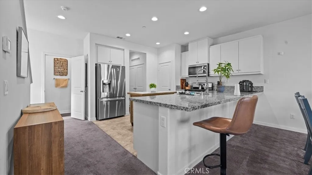 Welcome to this beautifully maintained 2020-built home in a quiet and well-kept Moreno Valley neighborhood. This modern two-story residence offers 3 spacious bedrooms, 2.5 bathrooms, loft, and approximately 1,733 sq ft of bright, open living space. The main level features a seamless flow between the living room, dining area, and contemporary kitchen, which includes a large island, stylish cabinetry, recessed lighting, and ample counter space for cooking and entertaining. Upstairs, the primary suite offers a walk-in closet and a private en-suite bathroom, while the secondary bedrooms are generously sized and situated near the convenient upstairs laundry room. Additional features include energy-efficient systems, dual-pane windows, central HVAC, and an attached 2-car garage. The low-maintenance yard provides easy upkeep and space for relaxing or outdoor dining. Located near shopping, dining, parks, schools, and major commuter routes, this home offers modern comfort, convenience, and move-inready appeal.