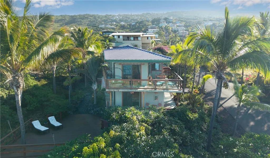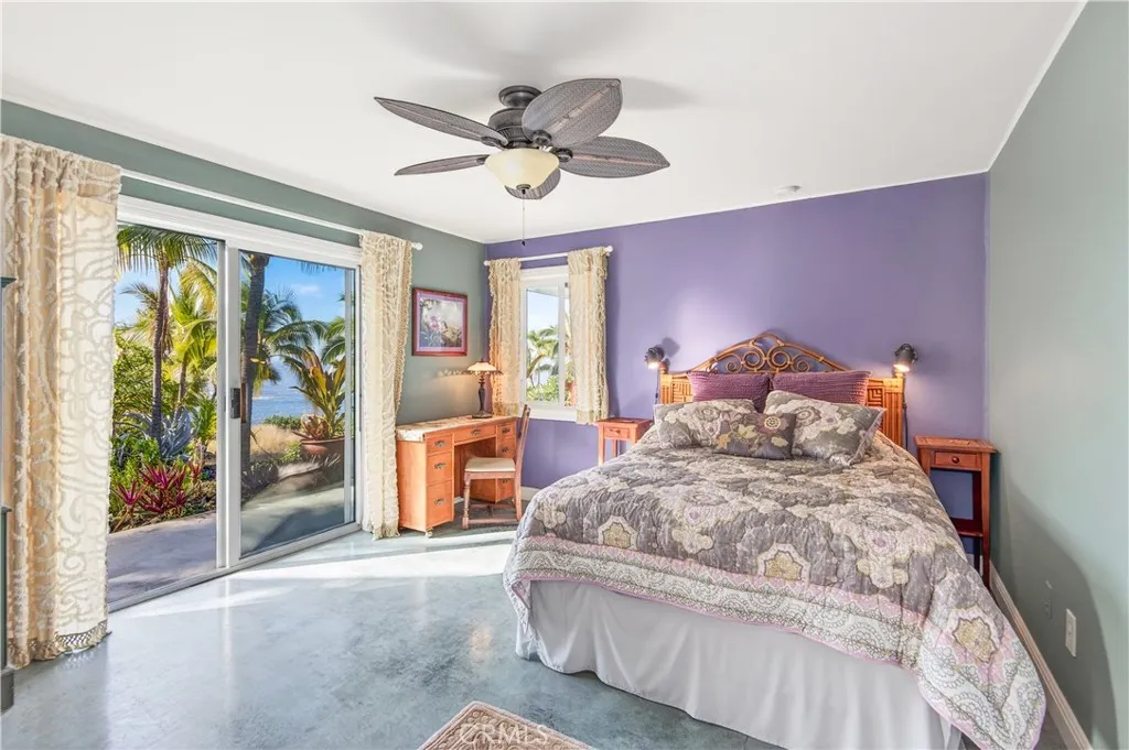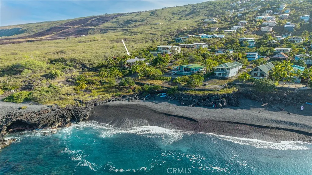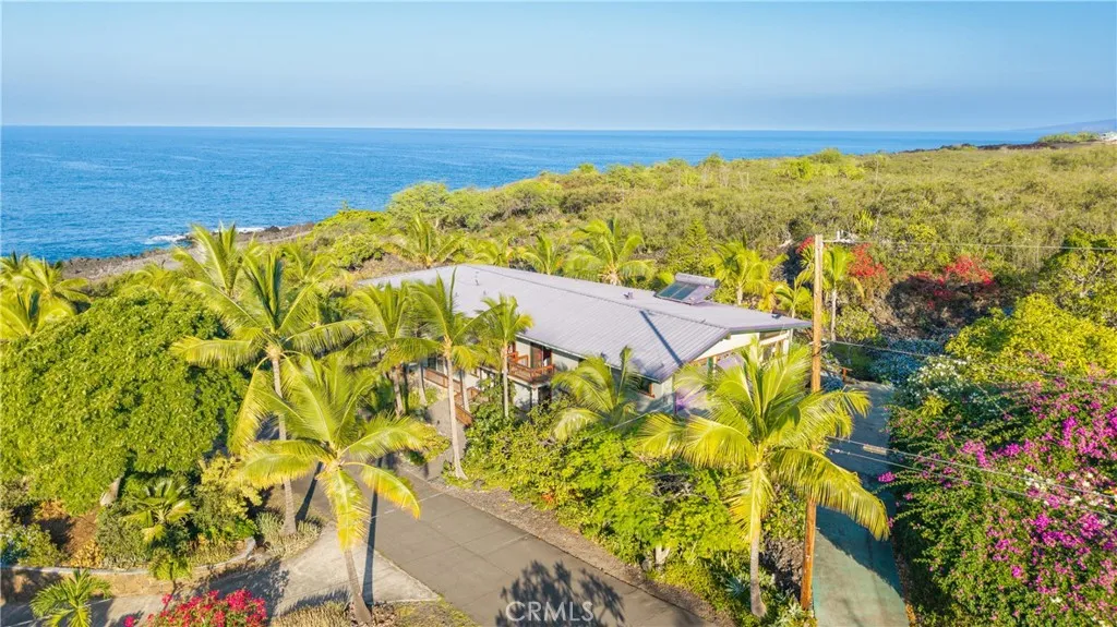 Steps from the beautiful Pebbles Beach, which is part of a protected conservation bay, this home offers an unparalleled connection to the ocean. It is a hidden coastal gem that is perfect for snorkelers and divers, where crystal-clear waters and vibrant marine life provide absolute tranquility. Rising 70 feet above sea level, the residence captures sweeping ocean vistas and mesmerizing sunsets that paint the sky every evening. Located at the end of a winding, palm-lined road, this secluded haven evokes the timeless beauty of old Hawaii. With a 70-acre ranch on one side and the endless Pacific Ocean on the other side, it is a rare sanctuary of privacy and peace. Built for longevity and luxury, the home is constructed of solid concrete, reinforced with 7,500 pounds of steel, and approximately 400 cubic yards of concrete, including concrete lanais off of every room for seamless indoor-outdoor living. The home will be delivered with all of the furniture and art work you see in the pictures, including five kayaks. There is solar hot water and the house could easily be a totally off-the-grid home. It also has an outdoor shower and a Jacuzzi hot tub. It features a guest room/office, arches, columns, yoga deck, a childs fort, murals, artistic art, and patina cement floors throughout the home. Imagine driving down a little windy road to a secluded rural area that feels like the old Hawaiian days. The road is lined with plumeria and coconut palm trees, and at the end of the road, youve reached your future paradise! The home is a one minute walk out the back door to Pebbles Beach, whi