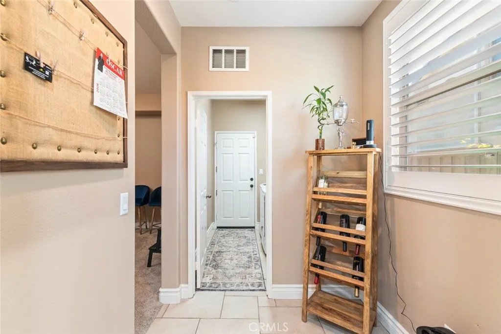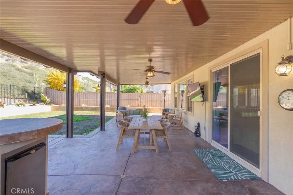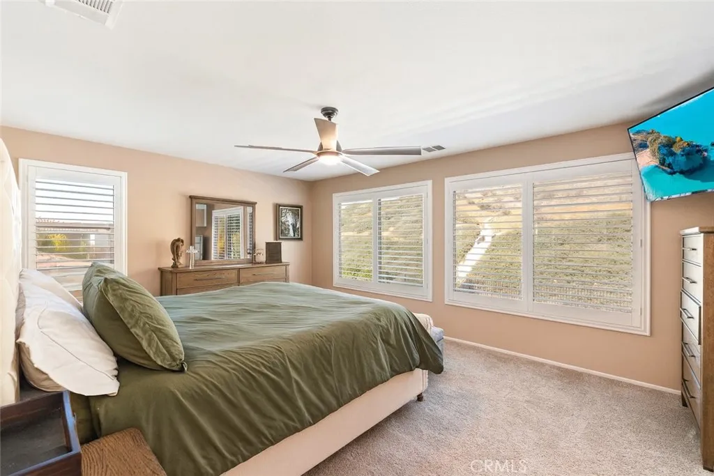 Welcome to this beautifully updated 5-bedroom, 2.5-bath home in the highly sought-after Canyon Hills community of Lake Elsinore. Offering 2,633 square feet of living space plus a versatile loft and solar, this home sits on a spacious 7,405 square foot lot and features a desirable 3-car garage. The moment you enter, youll appreciate the open and airy layout with high ceilings, abundant natural light, and brand-new interior and exterior paint. The home features a stylish combination of tile flooring and new plush carpet throughout. The main level includes a convenient half bath and bedroom that flows seamlessly through the living room, family room, and kitchen, making it ideal for both entertaining and everyday living. The kitchen is well-appointed with granite countertops, custom cabinetry, recessed lighting, a center island with additional storage, and a walk-in pantry. It opens to a casual dining area with direct access to the backyard. The family room features a gas-starting wood-burning fireplace, built-in cabinetry, and a ceiling fan. A dedicated laundry room with cabinetry, utility sink, and direct garage access completes the main floor. Upstairs, enjoy a loft ideal for a home office or study and a spacious bonus room with double-door entry. The primary suite offers stunning mountain views, dual vanities, a soaking tub, a separate glass walk-in shower, and two walk-in closets. Secondary bedrooms are generously sized with ceiling fans and mirrored closet doors. The hallway bathroom includes dual sinks and a tub/shower combination. The backyard is perfect for entertainin