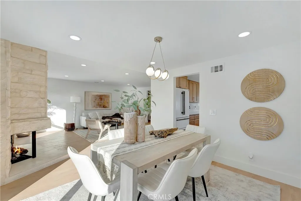 Fabulous location on an interior corner lot of a cul-de-sac sits this stunning coastal modern home that has been completely reimagined with timeless style, high-end finishes, and in the desirable Fashion Shores community. This beautifully remodeled 4 bedroom, 3 bathroom residence offers an effortless blend of warmth, sophistication, and functionality across 2,245 square feet of upgraded living space. Step inside to discover a bright, open concept floor plan filled with natural light and sleek designer details. The spacious living room features a striking stone fireplace that serves as an inviting focal point perfect for both relaxing and entertaining. The chef inspired kitchen showcases warm natural wood cabinetry, stylish countertops, high end appliances, bar seating open to the family gathering room with tons of natural light. A highly sought after layout offers two bedrooms on the main level including a luxurious primary suite that provides comfort and convenience for everyday living. Upstairs, you will find two additional bedrooms perfect for family, guests, or a private office setup. All three bathrooms have been fully remodeled with modern fixtures, new vanities, and elegant finishes. Outside, enjoy a private backyard retreat that offers the perfect setting for outdoor dining, entertaining, or relaxing in the coastal breeze. An attached 2 car garage with new epoxy floors provides direct access into the home. Ideally located in a prime Huntington Beach neighborhood near top rated schools, parks, shopping, dining, and downtown Huntington Beach, this home captures the es