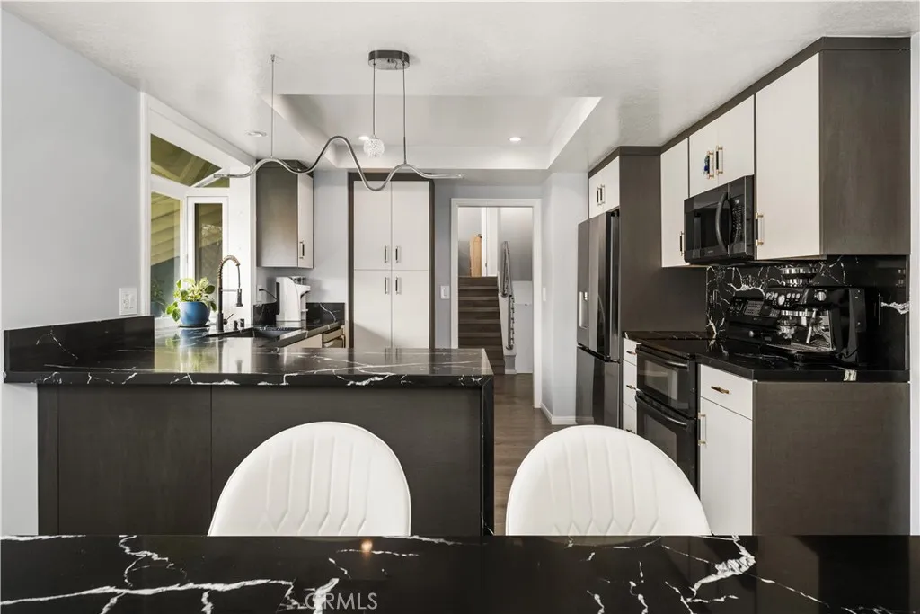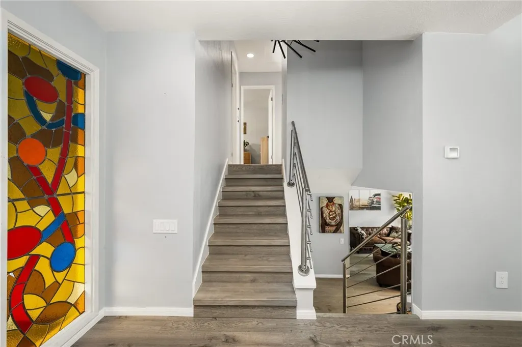 Welcome to this exquisitely remodeled home in the highly sought-after La Paz neighborhood. Nestled on one of the largest parcels in the tract, spanning over 10,000 square feet lot, this property boasts fresh, vibrant landscaping with beautiful trees, colorful flowers, and meticulously maintained greenery, creating a serene and inviting outdoor space. Step inside to discover a home that has been thoughtfully upgraded in 2024 and 2025. The interiors feature gleaming wood flooring throughout, fresh paint all through the house, recessed lighting in every room. Modern touches include an updated staircase and railing , along with a beautifully remodeled kitchen with high-end wood cabinets and stunning quartz countertops. The home also boasts new windows that enhance energy efficiency, elegant new sliding doors, and upgraded vanities and faucets in the bathrooms. Additionally, all new lighting fixtures complete the modern, sophisticated look. This spacious home offers three generous bedrooms and three full baths. The main floor includes a welcoming living room, an elegant dining area, and a cozy breakfast nook adjacent to the kitchen. Downstairs, youll find a family room and a full bath, which can easily be converted into a fourth bedroom. This DISTINCTIVE FEATURE offers separation from the main living area, along with independent access to both backyard and the street, essentially functioning like an ADU and providing both privacy and convenience. Upstairs, the master suite overlooks the lush backyard, while the additional bedrooms boast stunning mountain views. Additional featur