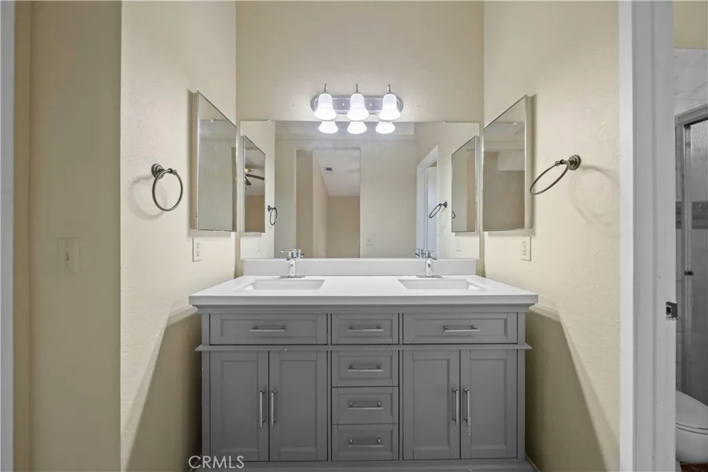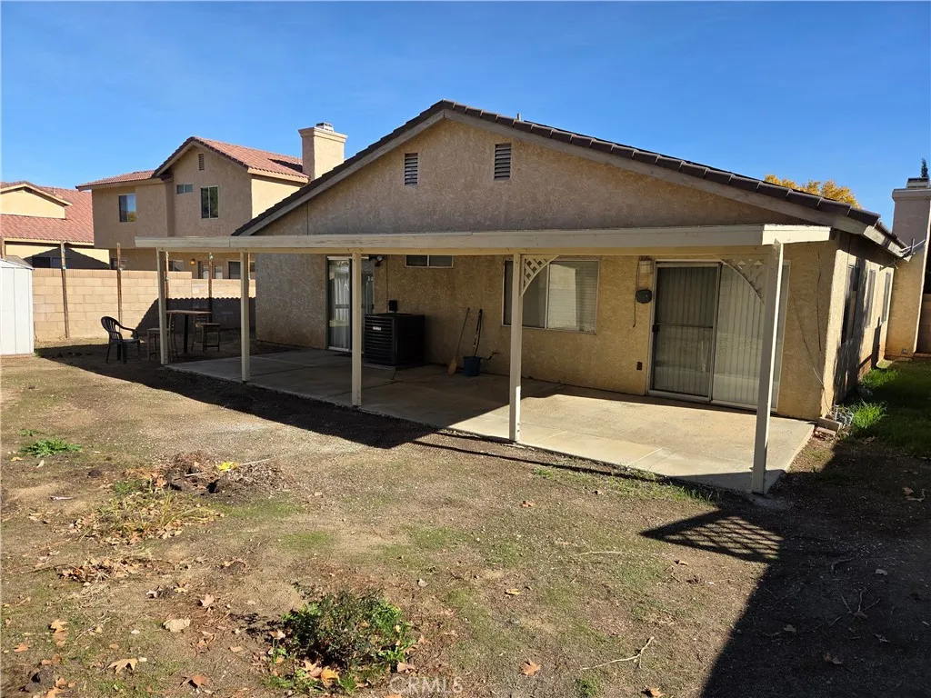 OWNED SOLAR!! Very Well-Maintained Home With Upgraded Tile Flooring Throughout, NEW Microwave, Upgraded Quartzite Kitchen Countertops And Breakfast Bar That Opens To Nice Sized Family Room. There Is Also A Formal Dining Room With Mirrored Panels, Hanging Chandelier Lighting For More Elegant Dining. The Dining Room Opens To The Living Room With Bay Windows and Brick Fireplace. Master Bedroom Features A Walk-In Closet And Tasteful Double Sink Vanity In Bathroom. Newer AC Unit. OWNED Solar With No Lease Payments...Just Low SCE Bills To Enjoy. Covered Patio In Backyard With Two Sheds For Additional Storage Surrounded With Block Walls. This Home Is A Must See!!
