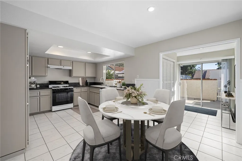 Beautifully Updated Townhome in La Cuesta Encantada. Set within a highly desirable community known for its mature trees, well-kept grounds, and charming architectural design, this townhome offers a fresh, modern interior and a comfortable two-story layout. The front door opens to a spacious family room featuring designer carpeting, recessed LED lighting, a sleek brick fireplace, and plantation-shuttered windows overlooking the landscaped front yard. The kitchen showcases modern gray cabinetry, granite countertops, updated appliances, recessed lighting, and tiled flooring. A generous dining area is open to the kitchen and offers a sliding door to the private patio, while a conveniently placed laundry closet sits just steps away. A main-floor half bath adds practicality for guests. Upstairs, the primary bedroom features double entry doors, vaulted ceilings, designer carpeting, a view window, and two closets. The primary bath includes a vanity with a makeup area and a walk-in shower with a new glass enclosure. The secondary bedroom also offers vaulted ceilings, matching carpet, and a spacious closet, with a full hall bath nearby. The backyard provides a private concrete patio enclosed by stucco walls, with a gate leading directly to the detached two-car garage just steps away. Community amenities include a pool and clubhouse, adding to the overall appeal of this well-located San Dimas residence.