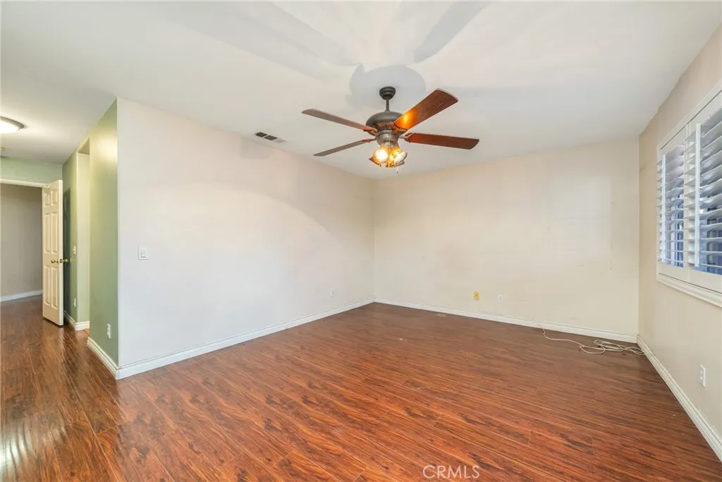 Prime San Bernardino location minutes to Loma Linda University Medical Center, Loma Linda VA, and the rapidly growing Redlands dining, shopping & entertainment corridor (Citrus Plaza, Packing House District & all the new hotspots along Redlands Blvd).Pride of ownership is evident in this meticulously maintained single-story home featuring fresh interior/exterior paint and covered patios front and rear. Durable laminate flooring flows through the formal living and dining rooms, accented by a built-in recessed niche ideal for media or display.The bright, open kitchen showcases custom tile flooring, full tile backsplash, and connects seamlessly to the expansive great room with dual ceiling fans, a striking custom light fixture, three stylish display niches, and abundant built-in cabinetry for seamless organization.Hallway with built-in desk and extra storage leads to a flexible front bedroom currently opened to the great room perfect as a den, office, craft room, or easily enclosed for a true fourth bedroom. Both bathrooms tastefully updated with custom vanities and sinks. Spacious primary suite includes laminate flooring, ceiling fan, plantation shutters, and direct slider to the backyard.Private backyard offers block walls, new vinyl side fencing, built-in BBQ island with its own covered patio, and full-length Alumawood patio cover over a generous concrete entertaining pad. Upgrades include a new whole-house water softener & filtration system plus owned solar (average electric bill only $67/month loan to be assumed).Turnkey, energy-efficient, and ideally located near prem