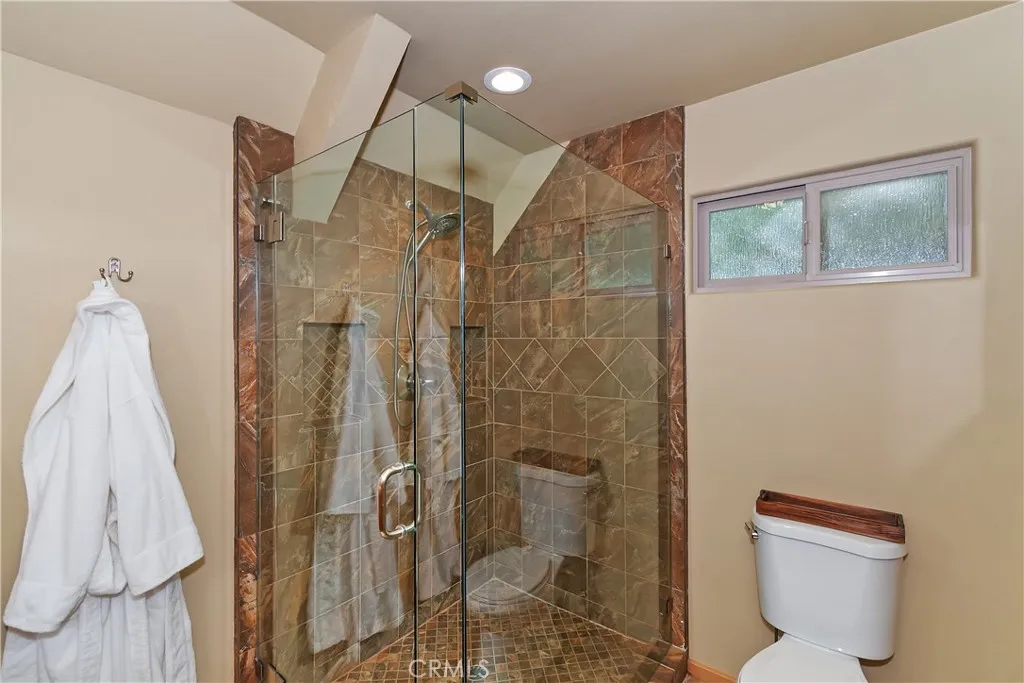 What is a "Prow-Style" home? Think of the front of a large boat or ship with an impressive "bow", if you will. The "Prow-Style" homes with their "wall of glass" represent the most popular architectural style of home in Lake Arrowhead. Most of the "Prow Style" homes were built by a renowned local builder in the 1960's-1970's. This particular "Prow" is a true gem offering modern comfort with timeless rustic charm. With 3 bedrooms, 4 baths, a den & a separate loft open style family room, it offers breathtaking panoramic views of the golf course and would work wonderfully as a full-time residence, vacation home, or short-term rental. The home features 3 spacious bedroom suites, one on the main level, and each with an attached bath for exceptional privacy. The lower-level primary suite offers a spa-like retreat with a soaking tub, fireplace, dual vanities, and direct access to the outdoor spaperfect for peaceful relaxation. A unique bunkroom suite sleeps up to six. The expansive upstairs loft is currently the perfect family/game room although it could double as a bedroom, too, offering flexibility for your lifestyle needs. The main level showcases cathedral ceilings and a great room open floor plan that fills the living space with natural light and frames the long-range mountain and golf course views. The living room features a beautiful stone fireplace, enhancing the homes warm mountain ambiance. The chefs kitchen includes gorgeous granite slab countertops, high-end stainless steel appliances, a wine refrigerator, a breakfast bar, and a walk-in pantry. Its designed for both ent