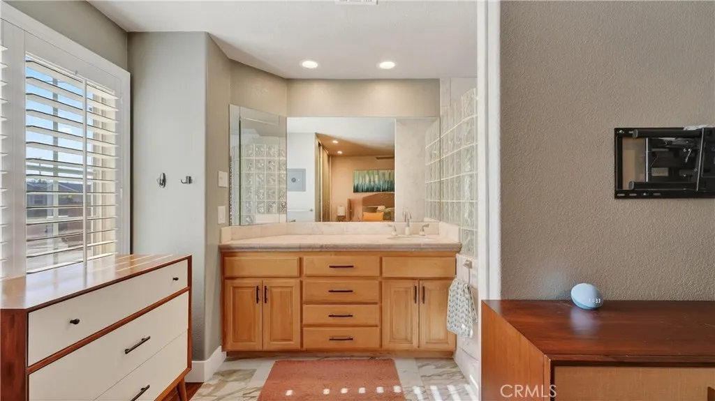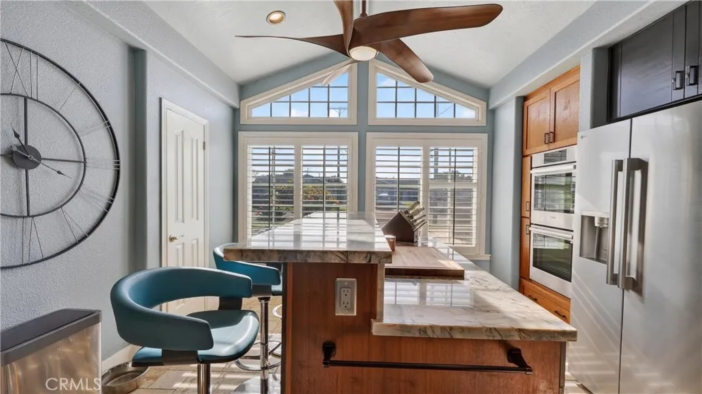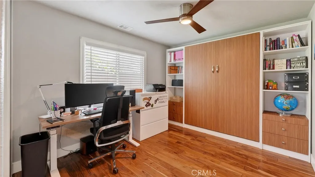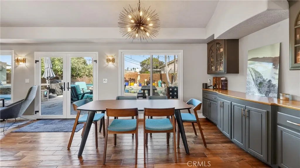 A rare opportunity to own a thoughtfully upgraded Mid-Century Buena Park pool home that blends timeless character with modern design and exceptional outdoor living. Offering 1,454 sq. ft. of refined living space, this residence also features a separate studio shed (2022)perfect for a private office, fitness studio, creative space, or guest retreat. Curb appeal immediately draws you in with fresh exterior paint and newer doors and windows (2019). Inside, the home is warm and inviting with hand-scraped hardwood flooring, recessed lighting throughout, and a cozy fireplace accented by a striking live-edge wood mantlea true focal point of the living space. The kitchen is designed to impress, showcasing premium quartzite countertops and backsplash, a generous breakfast bar, stainless steel appliances, and deep custom cabinetry thoughtfully designed for cookware and storage. Both bathrooms have been remodeled/upgraded with energy-efficient fixtures, and one bedroom offers the privacy of an en-suite bath, ideal for guests or a primary retreat. Energy-conscious persons will appreciate the paid-off solar system and newer HVAC, delivering comfort and efficiency year-round. Step outside to your own private resort-style backyardan entertainers dream. Enjoy a pool and spa with upgraded equipment and heater (2022), an expanded deck/porch (2024) for lounging and gatherings, and a fully equipped outdoor kitchen complete with an upgraded BBQ, dual refrigerators, and ample storageperfect for hosting unforgettable evenings with family and friends. Located on a desirable Buena Park street close