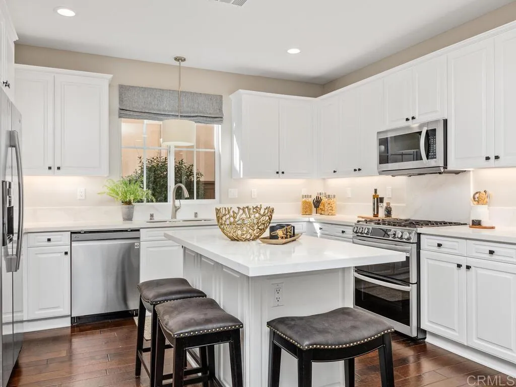 Rarely available & highly desirable Bridgewalk Plan 3 home with 4 BEDROOMS on a premium view lot with breath taking views of the hills & valleys of Black Mountain. No detail has been missed including the location which is the perfect combination of private yet perfectly placed with winding walkway right outside your front door which leads you down to Paseo del Sur allowing you easy access to the hiking trails, the Community Park & Del Sur Elementary. The inside of the home is light & bright with all white cabinetry throughout, freshly painted interior including the garage, Quartz counters with oversized island in the Kitchen & both upstairs Bathrooms also have Quartz counters, custom window treatments, wood flooring throughout the downstairs, BRAND NEW carpet upstairs, all stainless appliances including a top of the line LG double oven gas range, oversized garage with room for 2 cars AND storage, plus additional overhead storage & 220 outlet for car charging. The front patio has been designed with every detail in mind including lowering the front patio wall for sit down views, custom wrought iron gate, beautiful white rose bushes & there is even a planter on the side of the house which has beautiful Hydrangeas, Gardenias & Sweet Peas. The home is energy efficient with a whole house fan, LED recessed cans throughout & tankless water heater. There are too many upgrades to list. Please see attachment for the full list of ALL upgrades. Located in the coveted Del Sur Community, which is not just a regular community its a lifestyle! Pools, parks, hiking trails & community events.