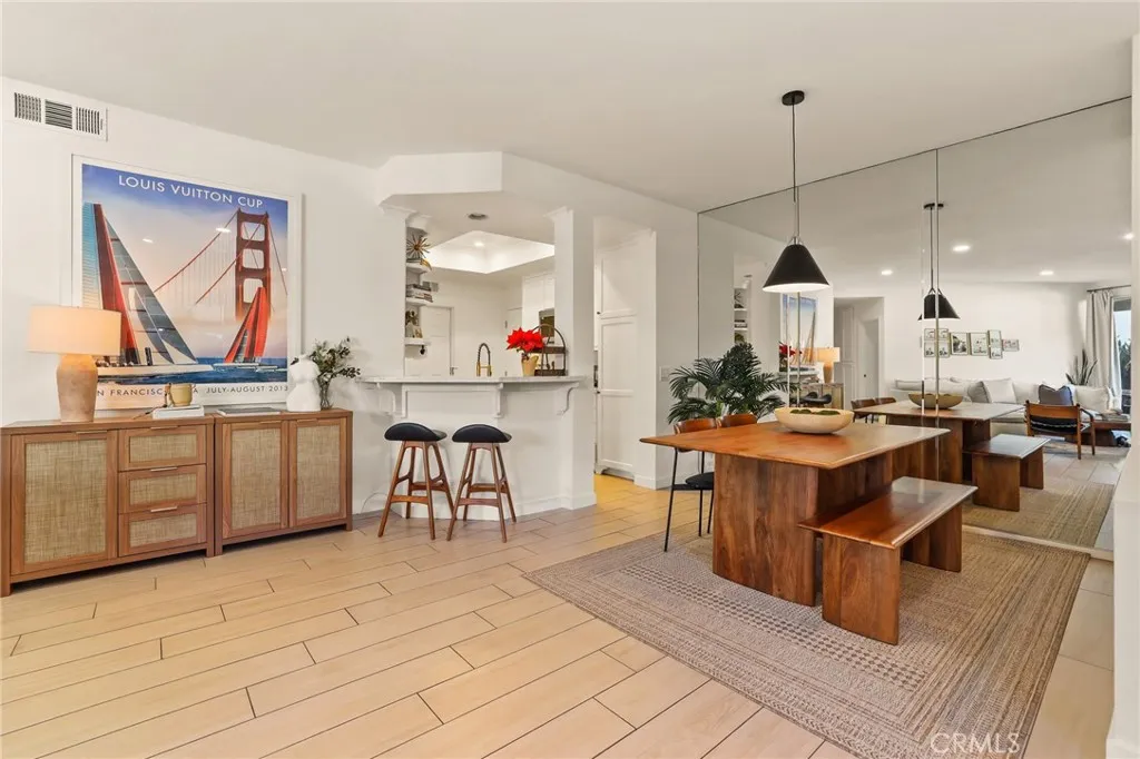 BACK ON THE MARKET! Newport Beach Remodeled Luxury Townhome located in a private, gated community just steps from the Back Bay trails. This stunning single-level, ground-floor residence features 2 bedrooms, 2 full bathrooms, and two single-car garages, including one attached garage with direct interior access. The beautifully remodeled interior offers a light-filled living and dining area with 9-foot ceilings and upgraded ceramic tile wood-style flooring throughout. The updated kitchen showcases, custom cabinetry, Carrara marble countertops, recessed lighting with under-cabinet illumination, crown molding, and new stainless-steel appliances, all included. A gas range with double ovens and a refrigerator water line provide both style and functionality. Custom dining room lighting and a wall of beveled mirrors enhance the sense of space and flow seamlessly into the family room with added custom canned lighting, featuring a gas fireplace (wood-burning capable). Sliding glass doors open to a large, private patio, perfect for indoor-outdoor living. The spacious primary suite offers two walls of mirrored closets and a completely remodeled en-suite bath with dual vanities, Carrara marble countertops, a new walk-in shower, updated sinks, faucets, mirrors, and medicine cabinets. Additional highlights include an interior laundry room, a newer heating system, and a community that has recently undergone a comprehensive renovation, including new roofs, fresh exterior paint, updated landscaping, resurfaced stone walkways, and a remodeled pool and spa. Centrally located near the Back Bay,