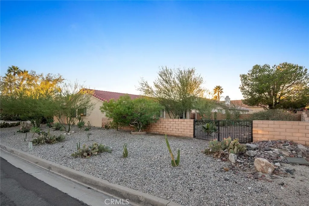Beautiful 3 bedroom/2 bath Spanish style home with a great corner lot location in the Mission Lakes Country Club. House features include a living room with a large brick fireplace, dinning room and a separate family room. All furniture included in the sale. Spacious back yard with views of the hills, low maintenance desert landscaping and R/V parking potential. There is a 2-car garage with laundry area. House comes with paid off solar panels so that you can run the brand new central A/C unit comfortably all summer long. HOA features all the amenities of the finest Clubs in the desert; Unlimited Golf (for 2 on title), pickleball/tennis, large community swimming pool, spa, fitness center, and more. Enjoy fine dining at 1 of 2 restaurants or a beautiful sunset at the bar. Located in one of the best areas of Desert Hot Springs, known for its natural mineral waters, and just minutes from downtown Palm Springs, the airport, and easy access to the 10 freeway. Do not miss out!