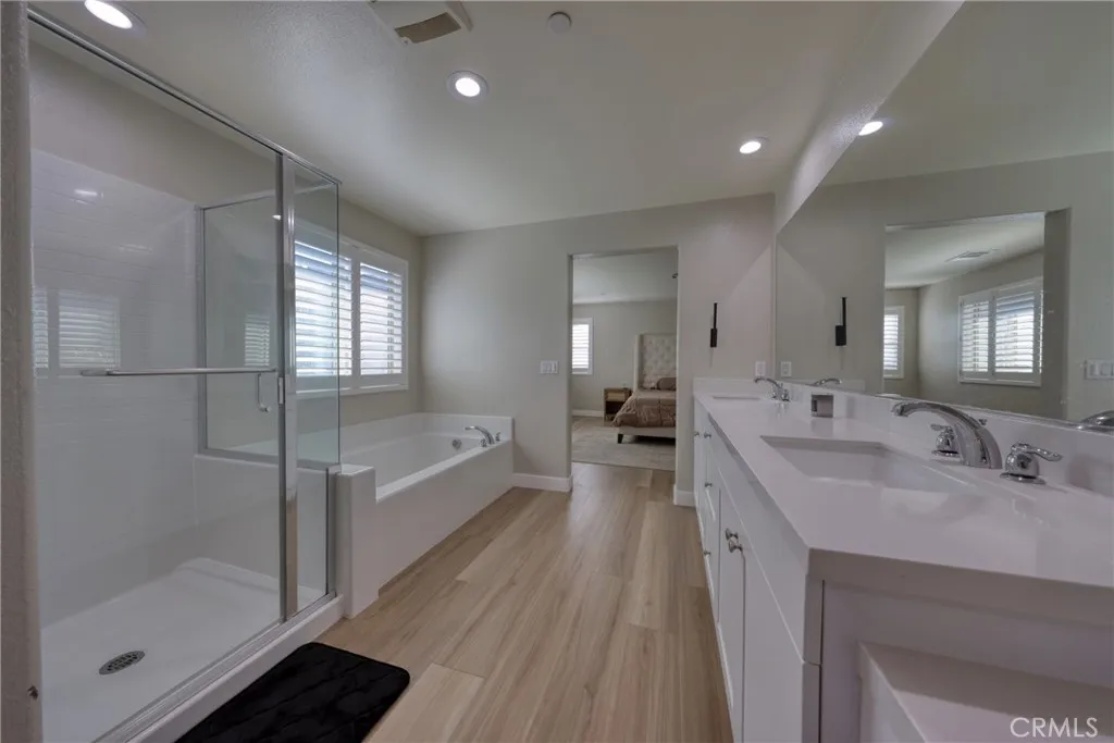 Welcome to this stunning, like-new 5-bedroom, 3-bath home offering 2,811 sq ft of beautifully designed living space, perfectly situated in a quiet cul-de-sac. Step inside to an open, inviting layout enhanced by upgraded light fixtures and a modern, upgraded fireplace that adds warmth and style to the living area. The spacious kitchen and dining areas flow seamlessly for entertaining, while the oversized primary suite features custom walk-in closet cabinets for exceptional storage and organization. One bedroom and full bathroom downstairs offer added convenience for guests or multigenerational living. Outside, the home is complete with fully finished landscaping in the front, ideal for relaxing, hosting, or simply enjoying low-maintenance outdoor beauty. The garage is a true standout, showcasing epoxy flooring and built-in cabinets, providing a clean, polished, and highly functional space. This home feels like brand new from top to bottommeticulously maintained and thoughtfully upgraded. Dont miss your chance to see it in personproperties with this level of care, upgrades, and location rarely come available. Come and see it!