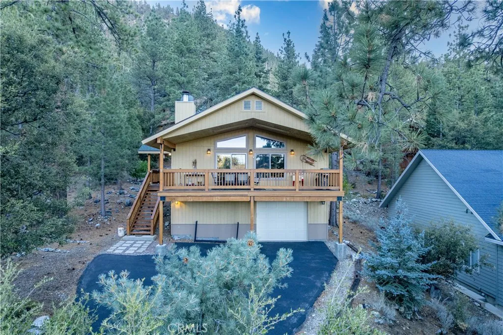 Breathtaking Mountain Views Await! Welcome to the unique, all-season community of Pine Mountain Club, located less than an hour from both Bakersfield to the north and Santa Clarita to the south. This beautifully maintained custom-built home invites you into its upper-level entry, opening directly into an expansive, open-concept living, dining, and kitchen area. Here, youll be captivated by sweeping, panoramic western mountain views that are even more spectacular from the spacious covered front deck, where you can savor the majestic mountain ranges, towering pines, and star-studded night skies. Inside, the kitchen boasts of newer stainless-steel appliances, quartz counter tops, breakfast bar and hickory cabinetry, while the living room is anchored by a cozy, stacked-stone, wood-burning stove and framed by picture windows. An elegant wrought iron chandelier enhances the dining area, along with modern lighting throughout the home. This level includes a primary bedroom with an en suite full bath and walk-in closet, a secondary bedroom and a second full bath. The lower level adds another bedroom, complete with its own ground-level entrance directly through the garage area. There is a freshly paved driveway and plenty of parking room for guests. This home also features interior fire sprinklers, an irrigation drip system and a potassium water softener. Pine Mountain Club provides a resort-like lifestyle with its range of amenities: a clubhouse, lounge, 9-hole golf course, seasonal Olympic-sized pool, kids' rec room, tennis and pickleball courts, equestrian center, trails for hikin