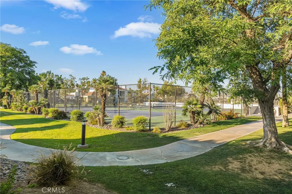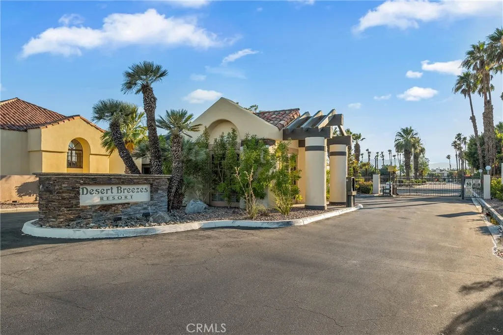 Welcome to Desert Breezes in beautiful Palm Desert! As you enter the home, you are immediately greeted by bright, open living spaces and soaring vaulted ceilings. To the right, the dining area features new light fixtures and flows seamlessly into the kitchenperfect for entertaining. The first en-suite bedroom is generously sized, offering ample closet space and a large private bathroom. Toward the back of the home, youll find a spacious living room highlighted by an oversized window, sliding glass door, and a stunning fireplace that fills the space with natural light. The second primary bedroom is privately situated and includes a walk-in closet and a large bathroom with dual sinks. Step outside to the cozy rear patio with a shaded awningideal for barbecues, relaxing, and entertaining guests.
