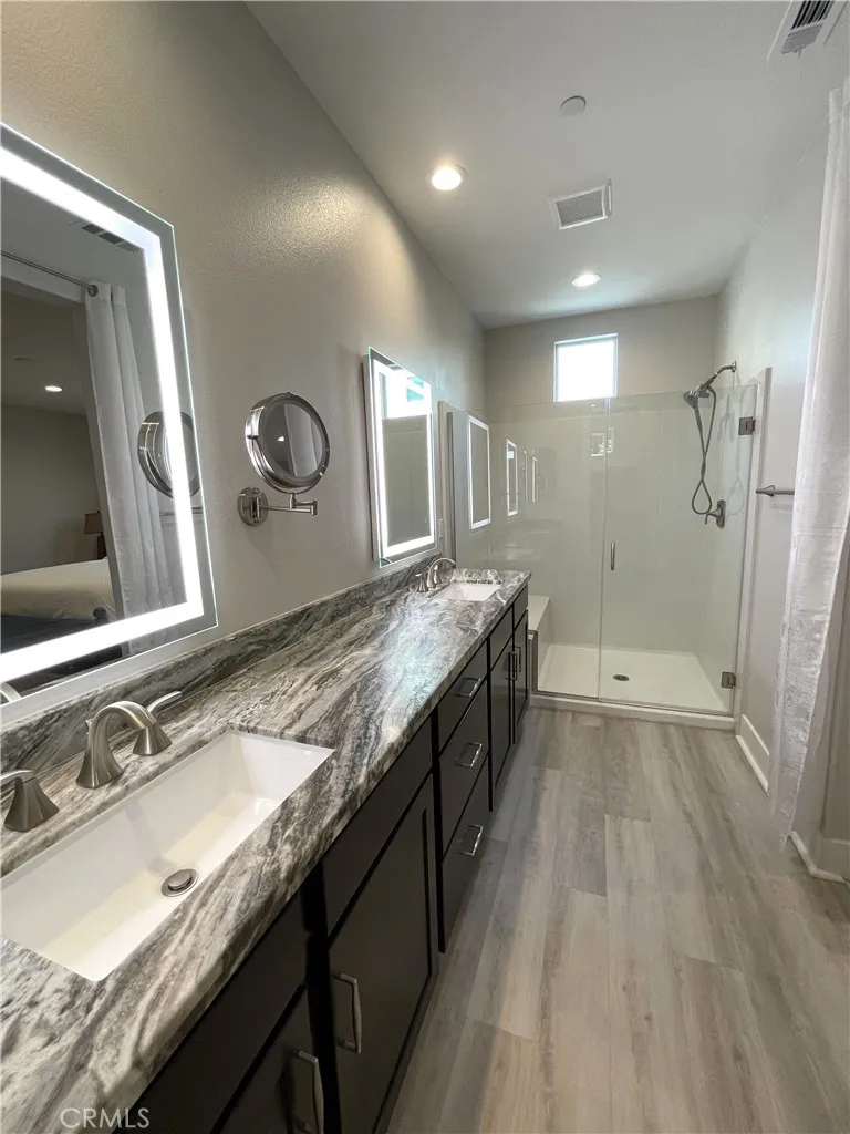 Experience the pinnacle of luxury and security this beautiful gated community. Welcome to ICON at Grace Park, this tri-level home is one of the limited Pulte builds, no expense was spared, built over and above the spec build. Situated on a premium lot set back for privacy. Technologically proficient with a full smart home system in place, wired for sound on 2 levels. The main floor is the heart of the home anchored by a spacious chef's kitchen filled with top-tier appliances and built-in's, generous luxe cabinetry, granite countertops and a large center island. The open concept layout allows light to flow through the expansive sliding glass door adding to the seamless indoor/outdoor flow. One of the few homes that have a coveted back yard, upgraded and enhanced with privacy trees and environmentally conscious irrigation system. Enjoy the serenity of the custom built waterfall perfect for evening tranquility and enjoyment. A well appointed grilling station with outdoor grill and ample counter space for hosting family and friends. Step inside to the top level where you'll find a nice entertainment or media room equipped with a wet bar, built in wine cooler and a quaint patio. Impressive upstairs bedrooms and baths offer a private retreat with luxury finishes throughout .The primary suite sets the stage for opulence boasting spa-like bath and shower, dual vanities, top-tier granite countertops and a roomy walk-in closet. This home also features recessed lighting throughout, a soft water loop, a centrally placed 2nd floor laundry room, a keyless 2 car garage wired for EV chargi
