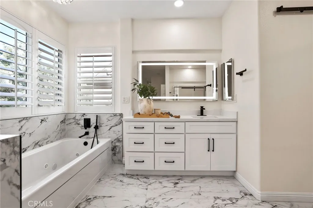 Fully Upgraded Entertainers Dream! Thoughtfully Curated & Intelligently Designed with a Warm Modern Vibe, this completely reimagined home was FULLY REMODELED with Stunning Upgrades in every direction! Located on a Private Cut-De-Sac featuring 5 Full Bedrooms, 3 Bathrooms, & BONUS ROOM! Upon entry the Upgrades and On-Trend designs are immediately noticed w/ Wood Look Luxury Vinyl Flooring, Designer Chandelier, Automatic Blinds, & Soaring Two-Story Cathedral Ceilings allowing for an abundance of Natural Light. The Spacious Family Room features Custom Built-Ins, Relaxing Fireplace, Plantation Shutters, Designer Interior Paint and 2 Sets of Sliding Doors that open to the Award Winning Backyard Oasis. The Chef's Kitchen leaves nothing to the imagination w/ Stainless Steel Appliances, Shaker-Style Cabinetry w/ Integrated Lighting, Custom Neutral Toned Granite Countertops & Range Hood, Convenient Pot Filler, Walk In Pantry w/ Custom Shelving, Spacious Center Island, Designer Chandelier, & 7 Stage Reverse Osmosis Water Filtration System! The Downstairs Bedroom & Fully Remodeled Bathroom with On Trend Designer Finishes & the Redesigned Laundry Room complete with Artisanal Tile round out the first floor. Upstairs you will find the Spacious Multi-Purpose Media Room Featuring Custom Built-In Home Entertainment Theater, Built-In Speakers, & Ceiling Fan. The Primary Suite Retreat Stuns w/ Natural Sunlight, Greenbelt Views, Custom Lighting, & an extended seating lounge. Start Your New Wellness Routine in the Spa Like Primary Bathroom Intelligently Remodeled with Designer Tile, His & Hers