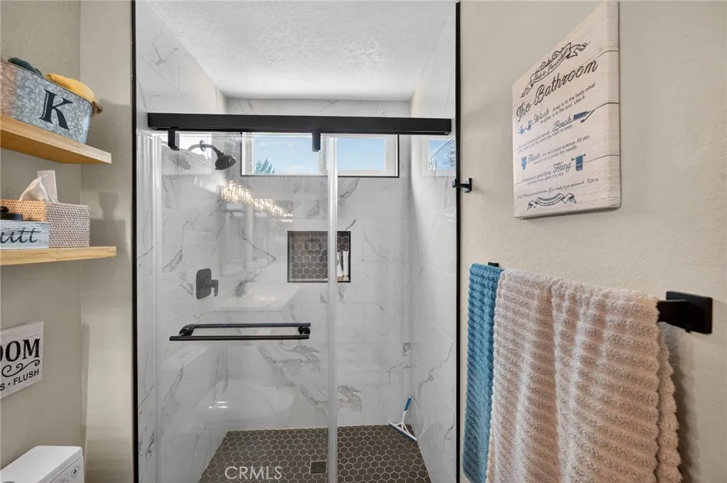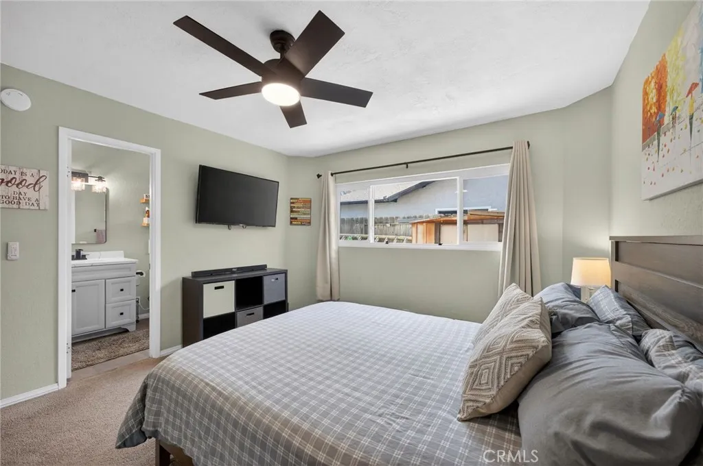 Welcome to an exceptional opportunity in the highly sought-after community of San Marcos Woods - a beautifully reimagined, Solar-Powered residence offering over 2,600 square feet of thoughtfully designed living space. Tastefully remodeled, this 5-bedroom, 3-bathroom home blends modern comfort with timeless appeal. As you step through the custom front door, youre welcomed into the formal living room, anchored by a cozy fireplace that creates an inviting first impression. Just beyond, the kitchen serves as the heart of the home, opening seamlessly to the family room - a dramatic space highlighted by soaring cathedral ceilings, a custom brick fireplace, and an abundance of windows that flood the home with natural light throughout the day. Off the family room, youll find four generously sized bedrooms on the main level, including a private primary suite ideal for multigenerational living or guests, along with an additional full bathroom. Upstairs, a second and oversized primary retreat offers a true sanctuary complete with a spa-inspired ensuite bath featuring a jetted soaking tub, walk-in shower, spacious walk-in closet, and a private balcony where you can unwind while taking in breathtaking coastal sunsets over the valley. Every detail has been thoughtfully upgraded, including brand new windows throughout, fresh interior paint, new exterior & garage doors, luxury vinyl plank flooring, plush new carpet, ceiling fans, LED Lighting, EV Charging Station, and beautifully resurfaced cabinetry and countertops complemented by new high-end stainless steel appliances. Practical improv