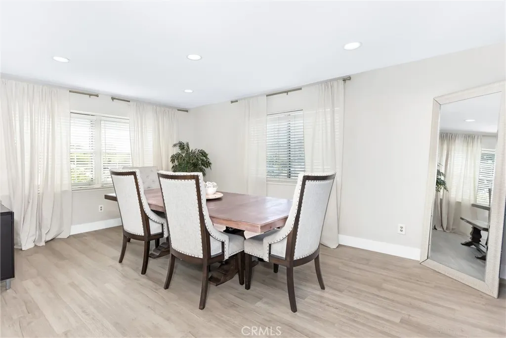 Single-story living with a pool and a beautifully remodeled kitchen! Welcome to 5450 Bonnie Brae St in Montclair, offering 4 bedrooms, 2 bathrooms, and 1,637 sq ft on a spacious 7,300 sq ft corner lot. The remodeled kitchen features white cabinetry, quartz countertops, a stone backsplash, coffee bar, and wine refrigerator, creating a stylish and functional space perfect for everyday living and entertaining. The formal dining area showcases a striking accent wall, while LVP flooring runs throughout the home, providing durability and a modern look. Step outside to your private backyard, complete with an in-ground pool and spa, ideal for relaxing or hosting summer gatherings. The yard is enclosed with block wall fencing for added privacy. Additional highlights include a 2-car garage and potential RV parking. Conveniently located near Montclair Place, Target, Costco, MacArthur Park, and quick access to the I-10 freeway, offering easy commuting and nearby shopping and dining.