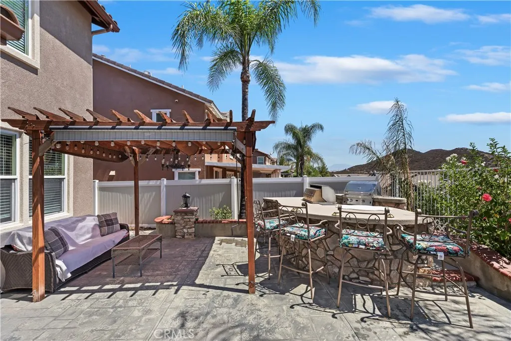 Located in desirable Murrieta Oaks, this VIEW home has it all! Home features 5 bedrooms (main floor bedroom currently configured as an office) and a main floor full bathroom. FULL interior & exterior paint refresh in 2023. Make your entrance through the gated courtyard leading into the spacious home. Separate Dining Room and extended Living Room with a nook in the back where the bar area is. Large kitchen has countertop bar seating, kitchen island seating AND a breakfast nook that is light and bright with a sliding door leading into the front courtyard. Kitchen features granite counters, new custom lighting fixtures and SS Appliances. Family Room has a built-in entertainment center, wood or gas fireplace & a sliding door to the backyard. Upstairs has 4 bedrooms, 2 baths and a large Loft with a balcony to look out onto the hillside views from the front of the home. Oversized Primary Bedroom has a balcony with french doors to take in the stunning panoramic Valley Views. Luxurious Primary Bathroom has dual walk-in closets, separate shower & soaking tub AND an Extra retreat behind the Primary Bathroom. The Backyard was MADE for entertaining with a barbecue island with 2 grills and a mini fridge to take advantage of the views!!! RV Gate on the side of home to bring ALL of your toys! No HOA! RV space behind the gate is 7' x 50'. Don't have an RV or toys to park? Income potential! Great Murrieta Schools including Antelope Hills Elementary within walking distance. Close to Home Depot, Target and the Murrieta Costco shopping center.