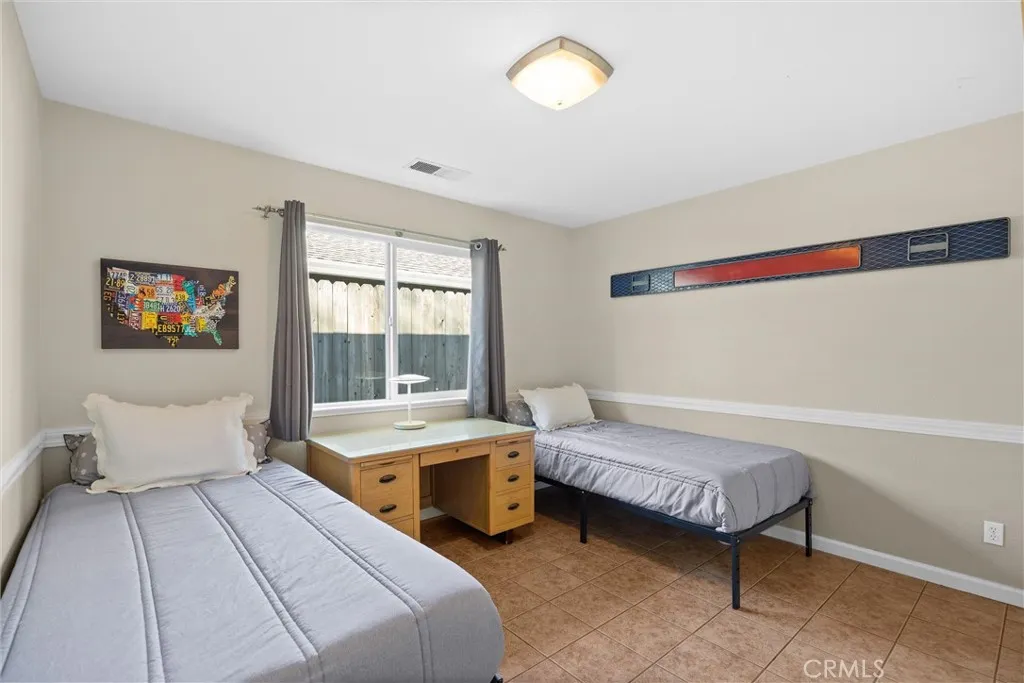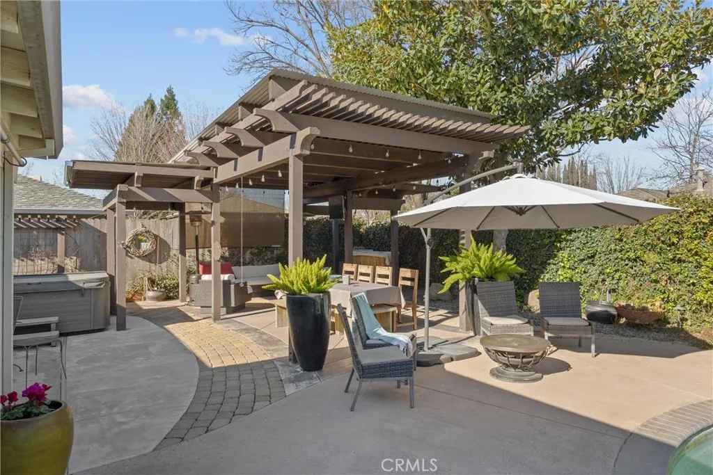 If youve been waiting for an Amber Grove home that truly captures the lifestyle people love about this neighborhood, this may be the one. Tucked on a quiet cul-de-sac, this beautifully maintained home was designed for both everyday comfort and unforgettable gatherings, with spaces that invite you to slow down, connect, and enjoy the best of Chico living. A welcoming front porch sets the tone, offering a place to sit back and enjoy the neighborhood as neighbors stroll and bike through the community. Inside, thoughtful updates and flexible living spaces create a home that is both functional and comfortable. Tile flooring provides durability and easy maintenance, while the home is pre-wired for multiple audio options with a dedicated media closet and infrared transmitters that allow equipment to remain neatly hidden. The layout offers comfortable living throughout, including a spacious primary suite with its own en-suite bathroom, creating a private retreat at the end of the day. The fourth bedroom features a sliding door that opens directly to the backyard along with convenient access to a full bathroom with walk-in shower, offering flexibility for guests or additional privacy. Step outside and the backyard becomes your own private resort. The 16x36 kidney-shaped pool offers plenty of space for swimming laps or floating the afternoon away while enjoying the peaceful sound of the stone waterfall. Lush greenery including creeping fig, star jasmine, honeysuckle, banana plants, and a queen palm soften the space and create a tropical feel. The custom pergola creates an outdoor liv
