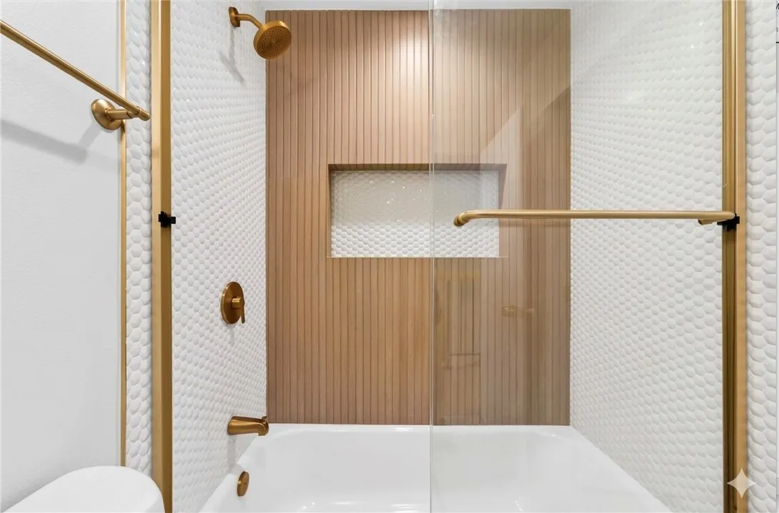 Exquisite SoCal Transitional Modern Remodel This property offers access to the highly regarded Palos Verdes Peninsula School District. This beautifully reimagined home showcases a warm, light, and airy design with natural tones and layered textures, complemented by champagne bronze fixtures for a polished, cohesive look. Completed as a full custom remodel by a professional contractor, no detail was overlooked. Interior Highlights: All-new Beach Collection Carmel flooring and baseboards, fresh Shoji White walls with Alabaster trim, and recessed lighting. Also includes dual-paned windows and HVAC. Downstairs and the stairwell features Luna Copper Distressed Chevron wallpaper for a sophisticated touch. Kitchen: Custom-designed with a walk-in pantry, breakfast nook, and peninsula. Features newly added cabinets, appliances, veined Calacatta Laza Oro quartz countertops, and a textured herringbone backsplash from counter to ceiling. Woven pendant lighting and wall sconces add artisanal charm. Primary Suite & Bath: Champagne bronze finishes and geometric accents echo the curated wallpaper and tile selections, creating a cohesive, elegant retreat. Sun Circles wallpaper in Cream Gold enhances the ensuite. Downstairs Bath: Fully updated with a new shower addition. Exterior & Patio: Refreshed landscaping with new trees and plants creates a serene outdoor space, perfect for entertaining or relaxing. Living in the Strathmore community of Rancho Palos Verdes offers a serene and well-maintained neighborhood with beautifully landscaped common areas and a welcoming, family-friendly atmosphe