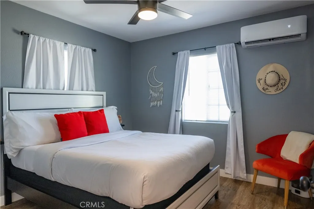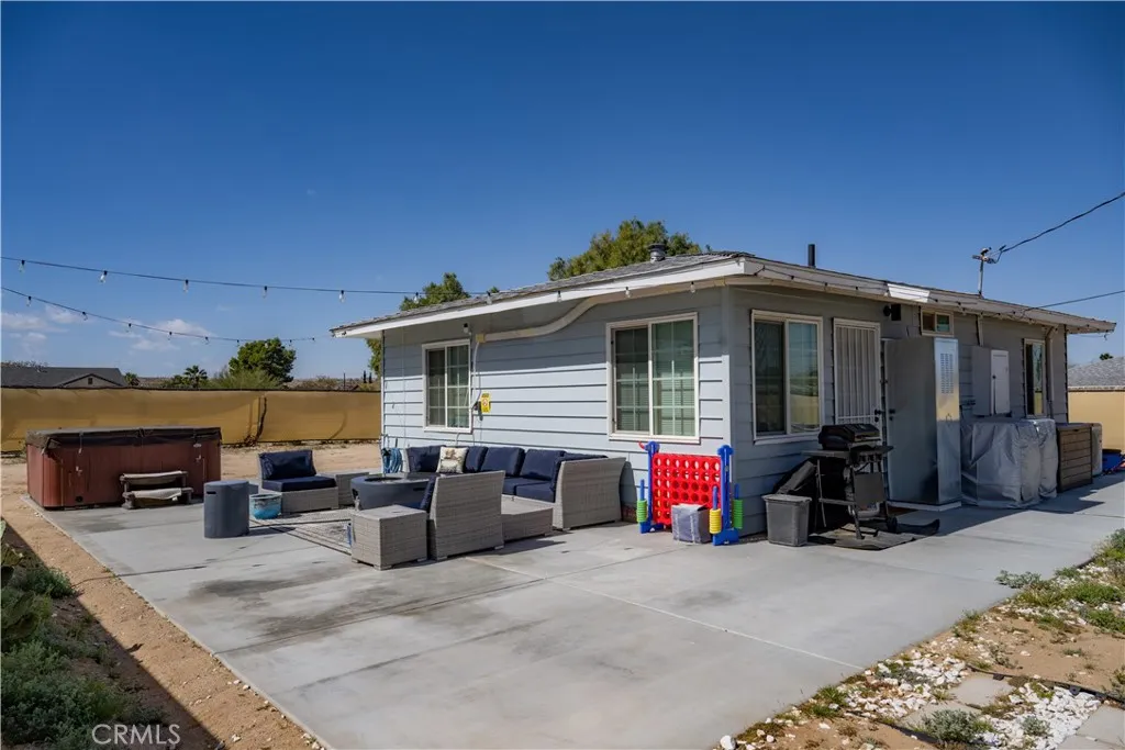 FULLY FURNISHED!! Turnkey desert retreat and successful Airbnb opportunity. Just 9 minutes from the iconic Joshua Tree National Park. This fully furnished home is being sold with all furniture, dcor, hot tub, cowboy pool, and hammocks included, allowing the next owner to seamlessly continue operating it as a short-term rental or enjoy it as a personal getaway. Situated on a large lot with ample parking, the property offers beautiful mountain views and plenty of outdoor space to relax under the unbelievable desert sky. The expansive lot also provides room to expand the existing home or build an additional front house, offering great potential for future development or added value. Renovation in 2023 included: new mini splits in both rooms and living room that work perfectly in cooling the house in the summer heat and keeping it warm during the "winter" desert nights, New fans throughout, new flooring, new recessed lighting, bathroom and kitchen all upgraded, new appliances, copper plumbing, new cement slab surrounding the house. 2024: added ambient lighting in the kitchen above and below the cabinets. This is rare chance to own a move-in ready desert escape with income already flowing in and room to grow. Buy it before someone else will! Seller is a licensed real estate agent.