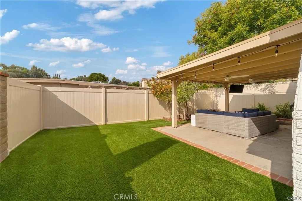 Situated in the desirable Valencia Racquet Club neighborhood, this tastefully updated home features 4-bed, 3-bath and just over 2,000 sf of refined living space. The inviting open floor plan offers a spacious living room highlighted by soaring vaulted ceilings and a cozy fireplace, formal dining room with a built-in bar, and beautifully remodeled kitchen equipped with stainless steel appliances and a breakfast counter. Step outside through dual sliding glass doors to a large covered patio, perfect for relaxing after a long day or hosting gatherings. The primary suite resides on the main level and boasts a renovated ensuite bathroom and ample closet space. Upstairs, you'll find three generously sized bedrooms and two full bathrooms. Other notable features include a gated front courtyard and two-car garage. Directly across the street is the gated community park, which features a sparkling pool/spa, clubhouse, tennis courts, a basketball court and playground. Additionally, you are conveniently located nearby excellent shopping and dining, top-rated schools and Central Park - a sprawling 130 acre park with a wide variety of recreational activities.