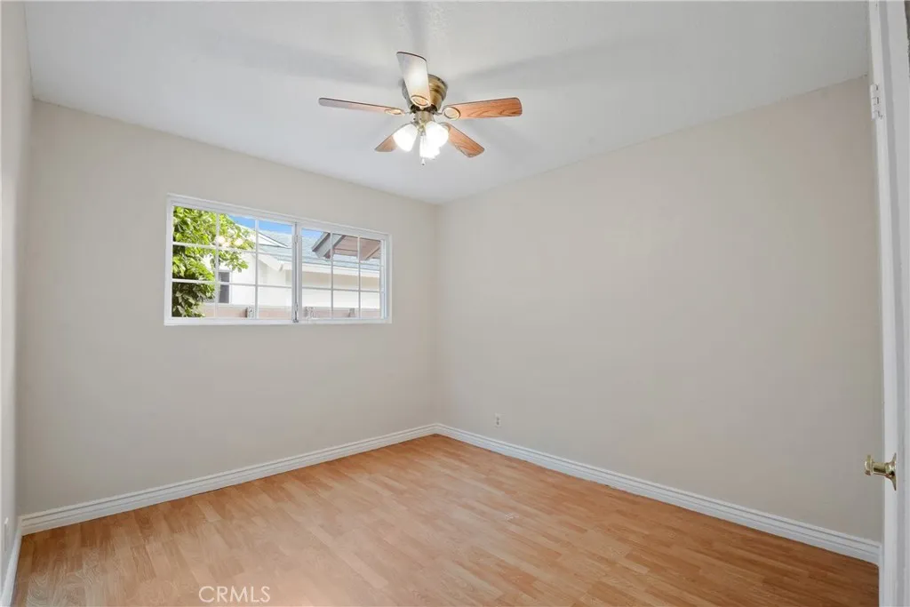 Beautifully maintained West Anaheim home offering spacious living areas, thoughtful upgrades, and a backyard designed for relaxing and entertaining. The open layout features a large living and dining space with tile flooring, crown molding, recessed lighting, and sliding glass doors that bring in natural light and provide seamless indoor-outdoor flow. The kitchen offers granite countertops, abundant cabinetry, a custom tile backsplash, built-in double ovens, gas cooktop, and convenient pass-through counters that keep the space connected to the main living areasperfect for everyday living and gatherings. Bedrooms are comfortably sized and feature wood-style flooring and ceiling fans, while the remodeled bathroom includes a modern dual-sink vanity with stone countertop, upgraded lighting, and a beautifully tiled shower. Step outside to a spacious backyard featuring mature landscaping, lush lawn, and a large covered patio with a built-in outdoor kitchen complete with BBQ, two side burners, sink, refrigerator, and generous counter spaceideal for entertaining year-round. Additional highlights include newer and upgraded central air conditioning, which is uncommon for many homes in this neighborhood, along with a newer water heater, providing comfort and efficiency. Conveniently located near shopping, dining, parks, schools, and major freeways, this home offers a wonderful opportunity in an established Anaheim neighborhood.