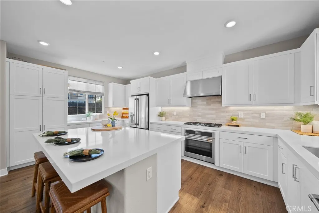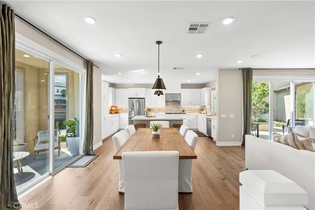 Ready to Move In 4 Bedrooms | 2.5 Bathrooms | Approx. 2,000+ Sq Ft Newer Fully Furnished Model Home with Premium Oversized Lot/Yard. Welcome to this beautifully maintained former model home located in the highly sought-after Solaire neighborhood of Five Point Valencia, one of Santa Claritas most vibrant and thoughtfully designed master-planned communities. Built in 2023 and showcasing professionally designed interiors, this exceptional residence offers modern style, bright open living spaces, and the rare opportunity to purchase a fully furnished home. All model home furniture and designer furnishings are included with the sale, excluding the sellers personal items, making this an incredible turnkey opportunity. Step inside to an inviting open-concept floor plan where the kitchen, dining, and living areas flow seamlessly together, creating the perfect space for both everyday living and entertaining. The stylish kitchen features sleek quartz countertops, a large center island with seating, stainless steel appliances, and abundant cabinetry. Natural light fills the home, highlighting the professionally curated finishes and thoughtful design touches throughout. Upstairs, youll find four generously sized bedrooms including a private and relaxing primary suite complete with a spacious walk-in closet and a spa-inspired bathroom designed for comfort and convenience. Additional highlights include recessed lighting, central HVAC, an upstairs laundry room, and a direct-access two-car garage. The backyard features a premium oversized lot that is beautifully landscaped and perfect for