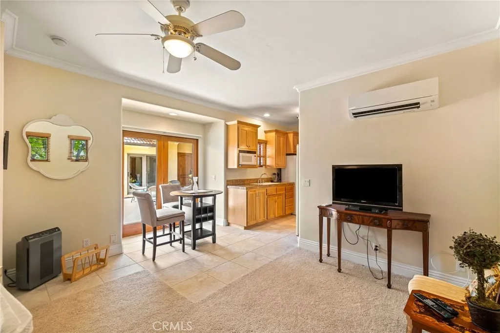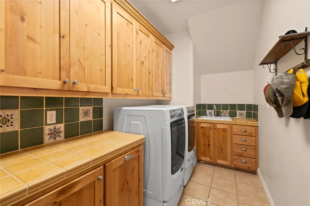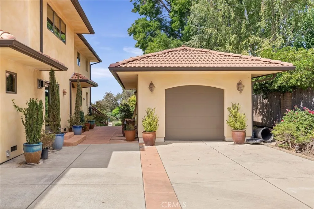 Fabulous Mediterranean Custom Home with Expansive Views & ADU This stunning Mediterranean-inspired custom home is designed for both comfort and elegance. Perched to take in breathtaking canyon and valley views, it offers a lifestyle of luxury, versatility, and relaxed sophistication. On the main level, the primary suite is a true retreat with its expansive spa-like bath, walk-in shower, and generous closet, plus private access to a serene courtyard with fountain. The living room impresses with its soaring beamed ceiling, a large gas fireplace with custom mantle and hearth, and French doors that open to a spacious tiled deck overlooking the valleyperfect for entertaining or simply enjoying the view. A formal dining room extends the gathering space further, opening to its own covered tiled patio for seamless indoor-outdoor living. The gourmet kitchen is the heart of the home, featuring a large gas range with a wall-mounted pot filler, an additional electric oven, a granite-topped island, and a walk-in pantry. Extensive storage includes deep drawers and a custom spice drawer, while a window above the sink captures views of the backyard. The kitchen flows effortlessly into the family room and breakfast nook, warmed by a free-standing gas stoveideal for both cozy nights in and lively gatherings. The homes craftsmanship is evident in the solid cherry and maple floors and the custom hand-painted tiles accenting the staircase. Upstairs, youll find additional bedrooms, office space, a kitchenette, and loft areasperfect for family, guests, or flexible living. Amenities abound, with b